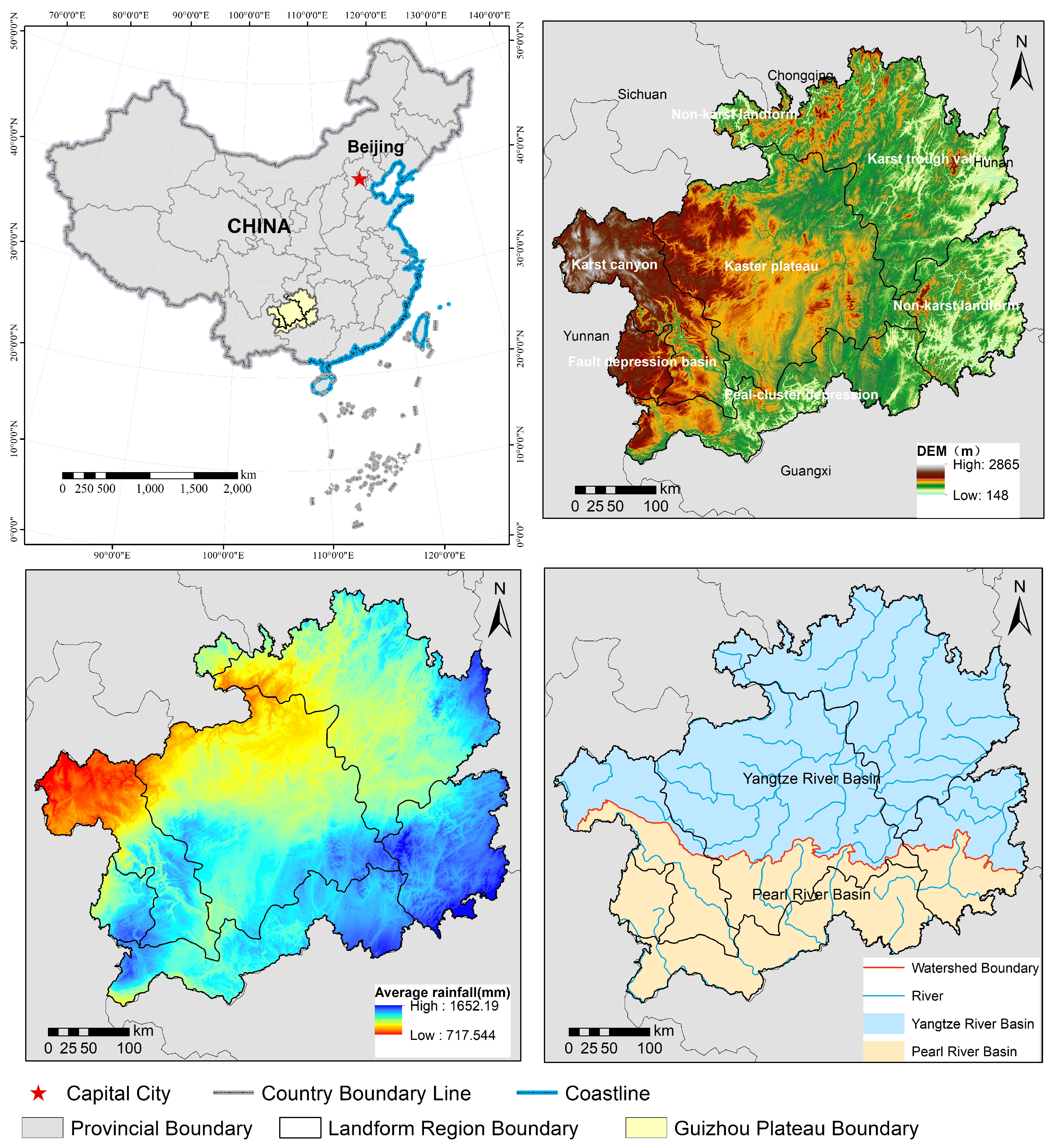 - Zhou, Y.; Zhao, L. Spatial Differentiation Characteristic Analysis of Soil Conservation and Its Ecological Value in Karst Areas. Geospat. Inf. 2025, 23, 49–53. [Google Scholar]