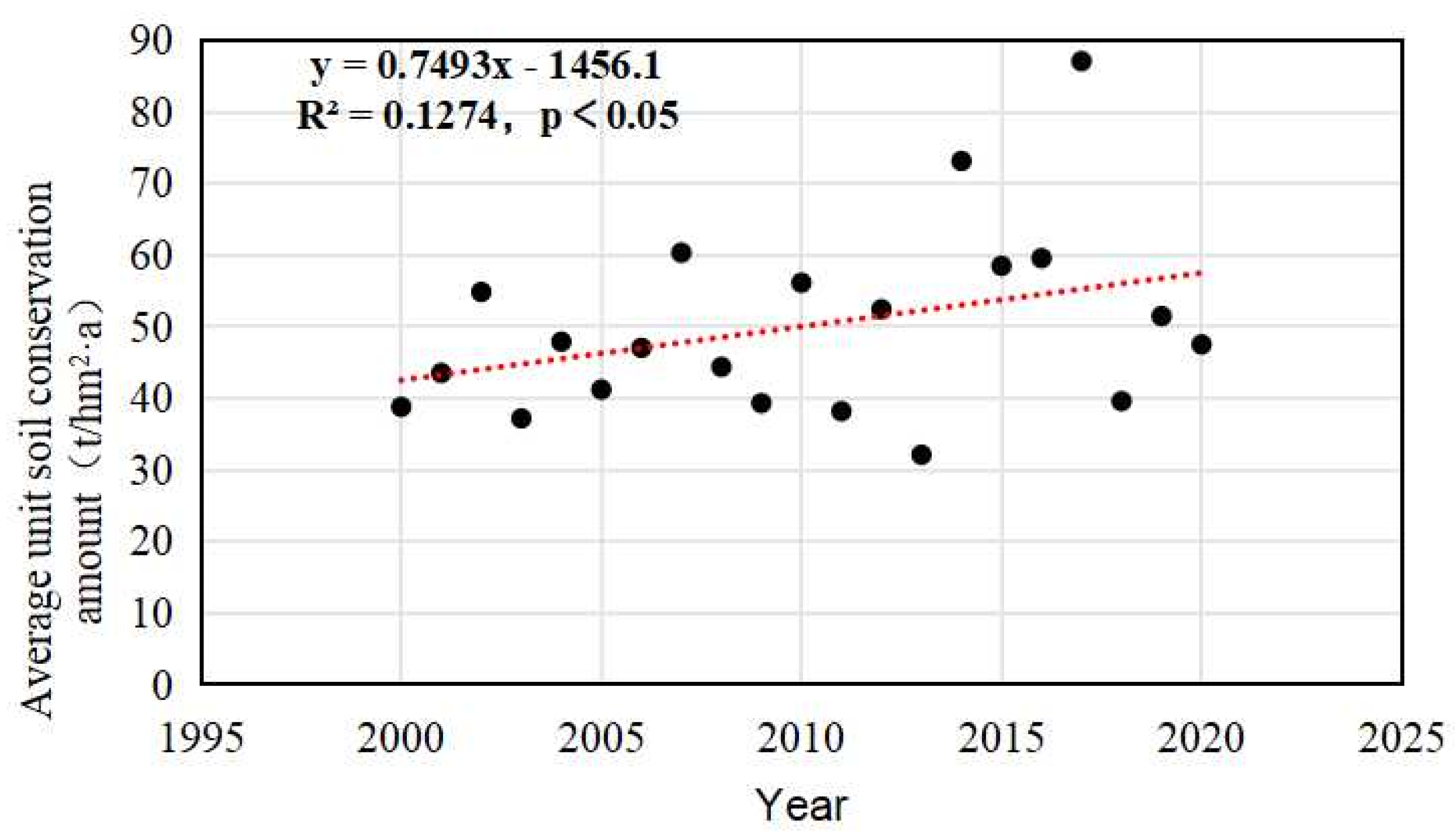3.2.1. Spatiotemporal Variation in Soil Conservation Services