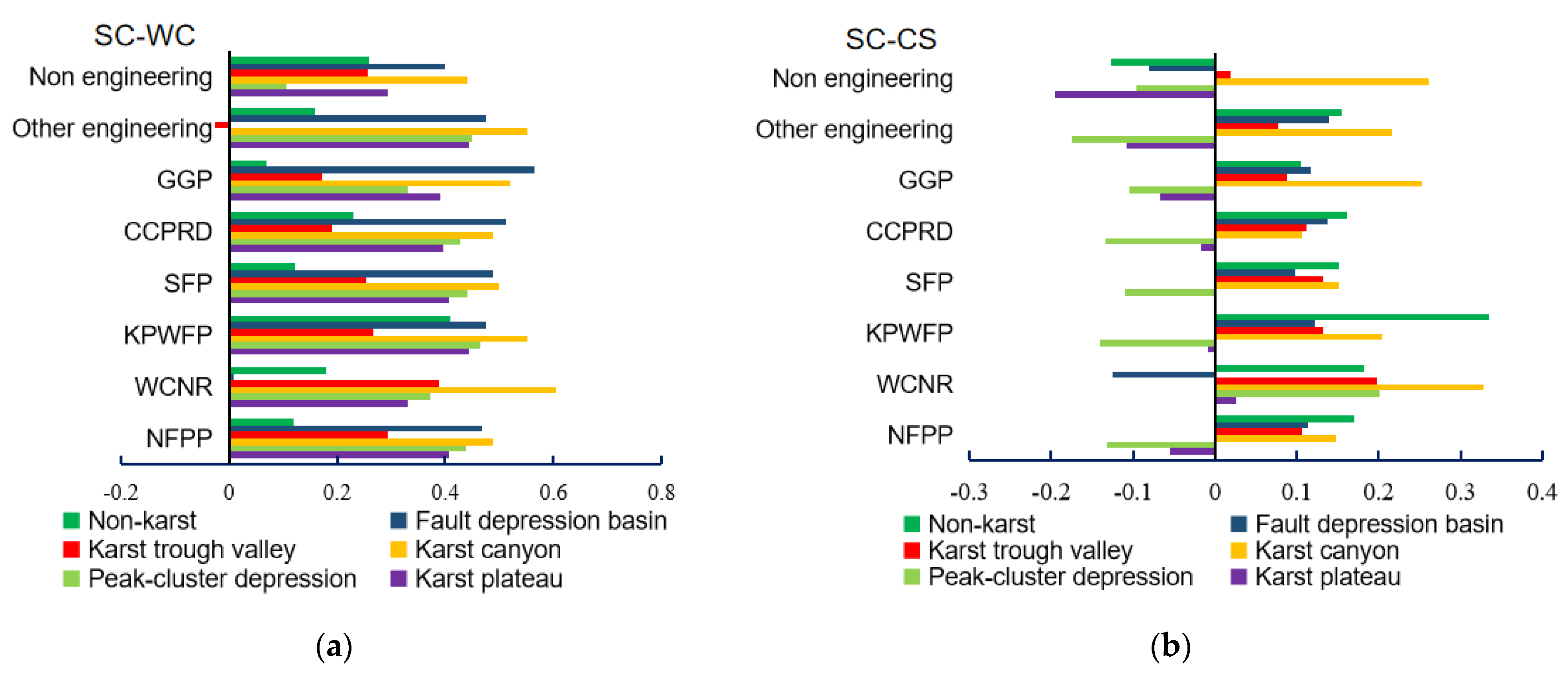 - Chen, W.; Zhang, X.; Huang, Y. Spatial and temporal changes in ecosystem service values in karst areas in southwestern China based on land use changes. Environ. Sci. Pollut. Res. Int. 2021, 28, 45724–45738. [Google Scholar] [CrossRef] [PubMed]