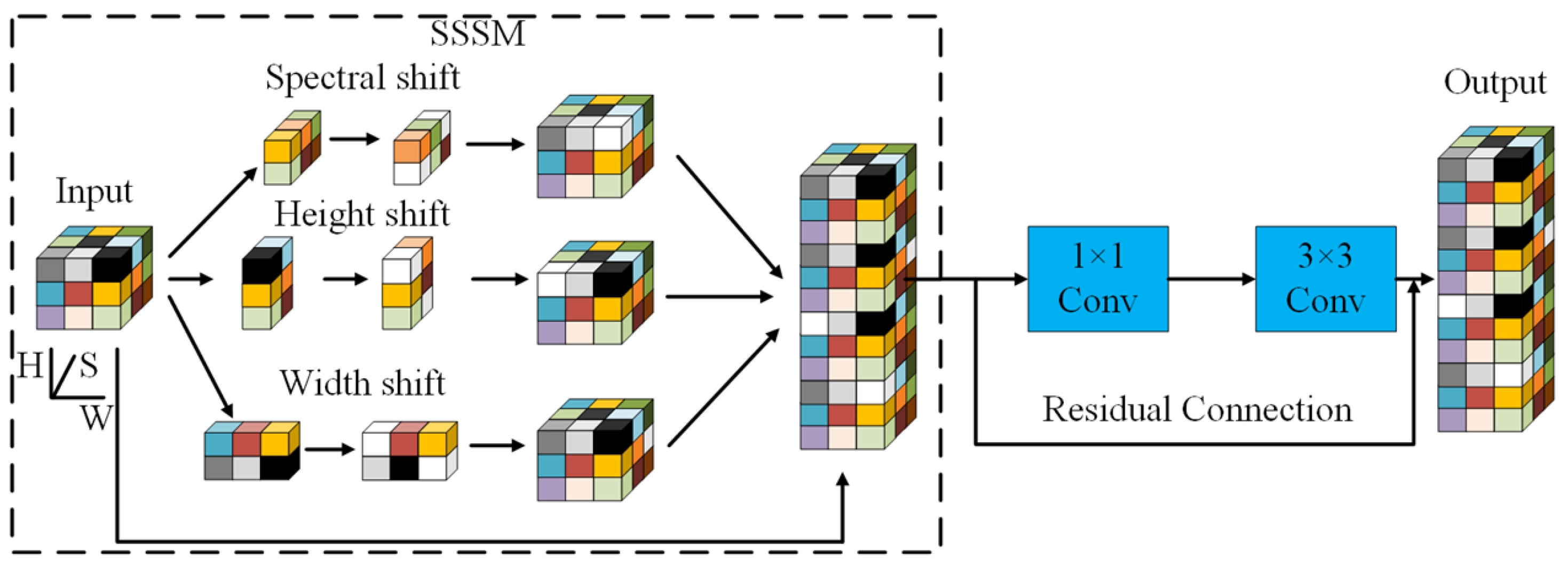 We design a dynamic Spectral–Spatial Shift Module that enables efficient multi-dimensional feature fusion through parameter-free shift operations, enhancing the model’s ability to capture contextual interactions across scales.