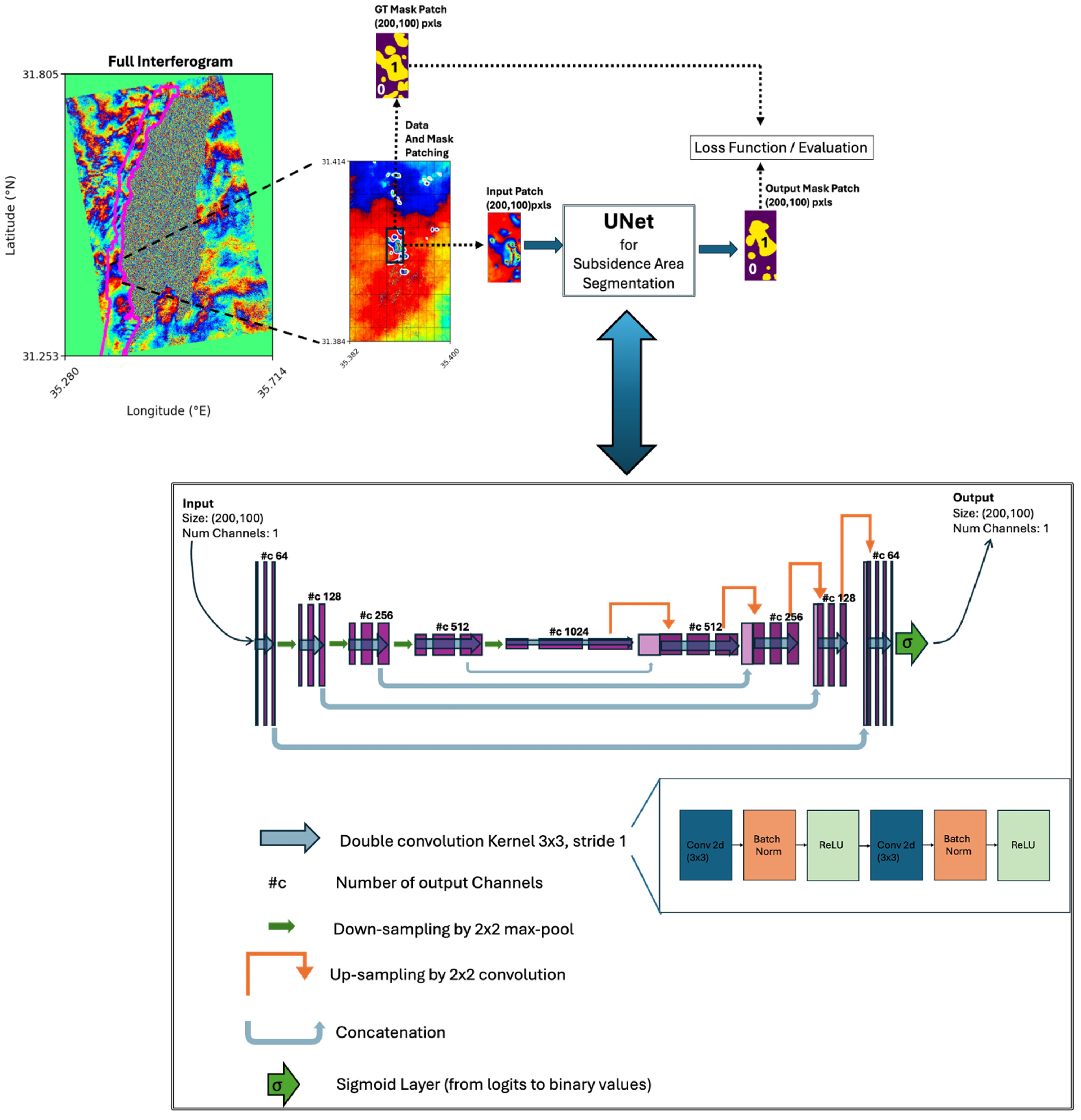 - A UNet-based Deep Learning architecture was used to detect subsidence patterns observed in Interferometric Synthetic Aperture Radar (InSAR) measurements.