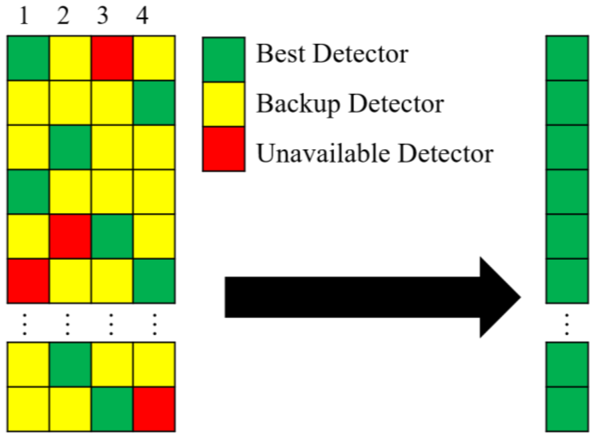 indicates superior overall performance of the detector. The BDS map is subsequently constructed by selecting, for each row, the detector with the highest