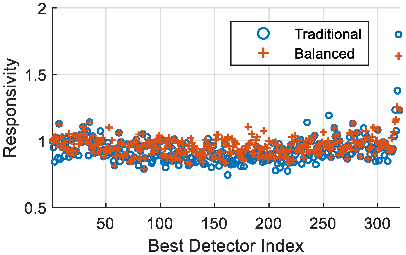 Validation using FY-4C/AGRI test data shows that the balanced-weight selection strategy proposed in this paper achieves synchronous optimization of other detector metrics without excessively compromising any single metric (such as sensitivity). Its comprehensive performance is significantly superior to the traditional “sensitivity-first” strategy. Furthermore, the weighting coefficients for different metrics can be flexibly adjusted according to specific remote sensing mission requirements (e.g., high-precision calibration needs or weak signal detection requirements), enabling customized optimal detector selection.