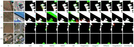 - Li, W.; Ma, G.; Zhang, H.; Chen, P.; Wang, D.; Chen, R. Multi-scenario building change detection in remote sensing images using CNN-Mamba hybrid network and consistency enhancement learning. Expert Syst. Appl. 2025, 298, 129843. [Google Scholar] [CrossRef]