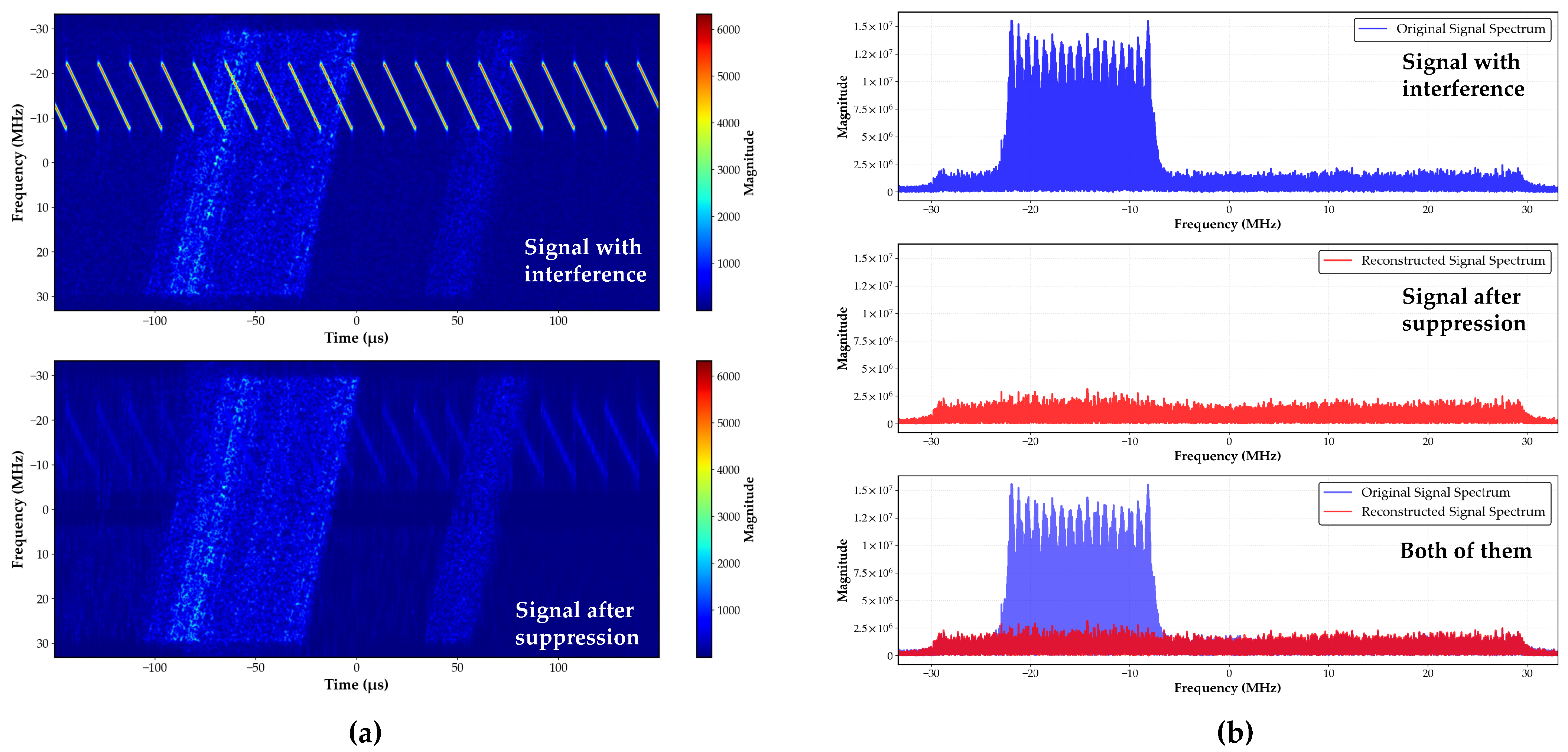 , indicating more than an order-of-magnitude increase. Evidently, unlike the interference-free SAR signal, the kurtosis value increases rapidly when a time window is superimposed with interference. It is also worth noting that although the above derivation assumes a single-tone interference (