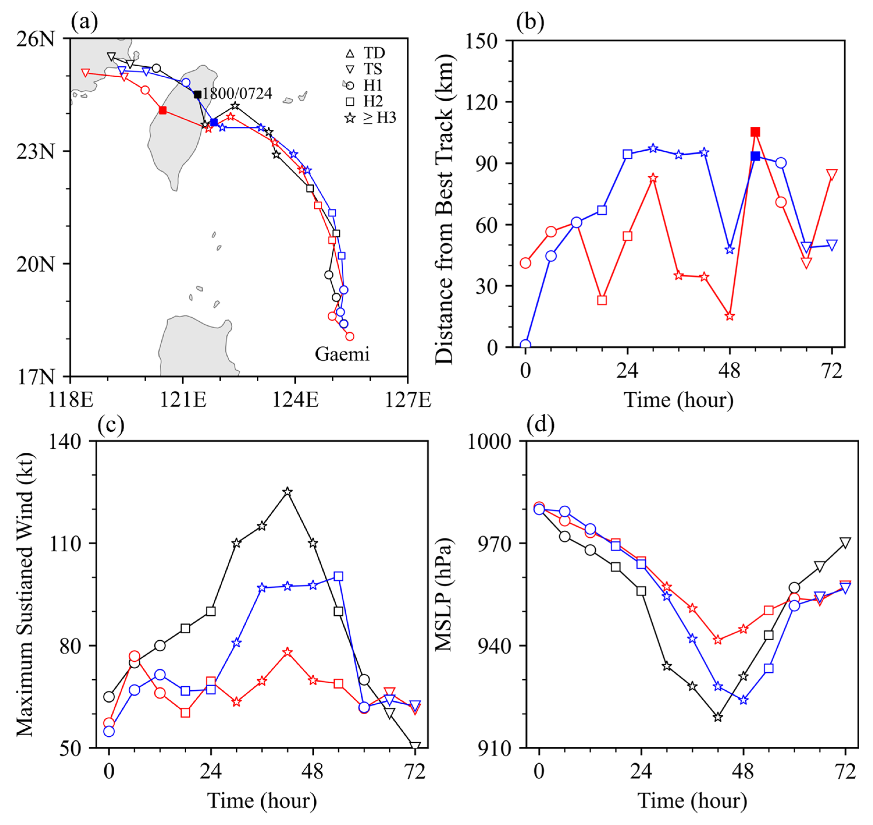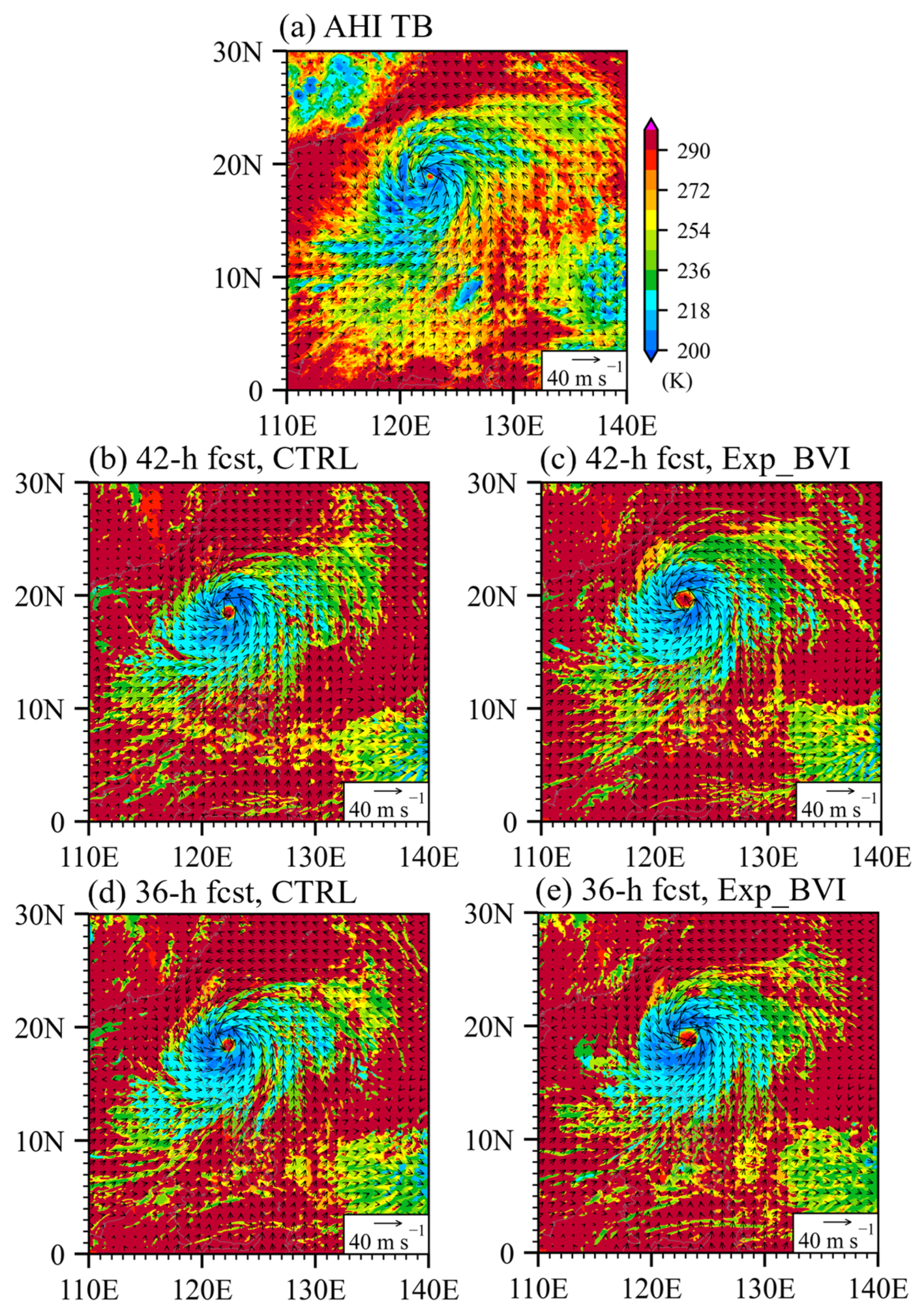 4.3.3. Impact of BVI on Intensity and Track Forecasts of Typhoon Gaemi