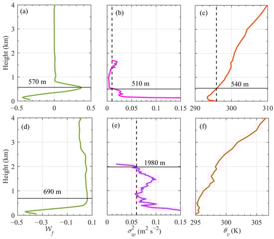 and the height at which the environmental virtual potential temperature first reaches or exceeds the surface virtual potential temperature is identified as the BLH (Figure 4c).