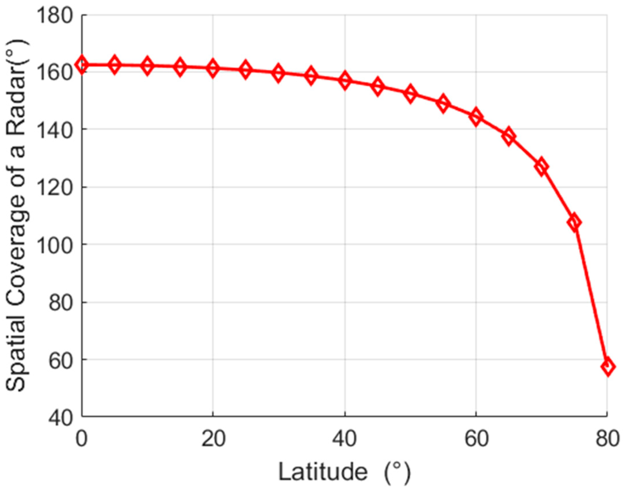 Figure 10 illustrates the spatial coverage of a single radar at different latitudes.