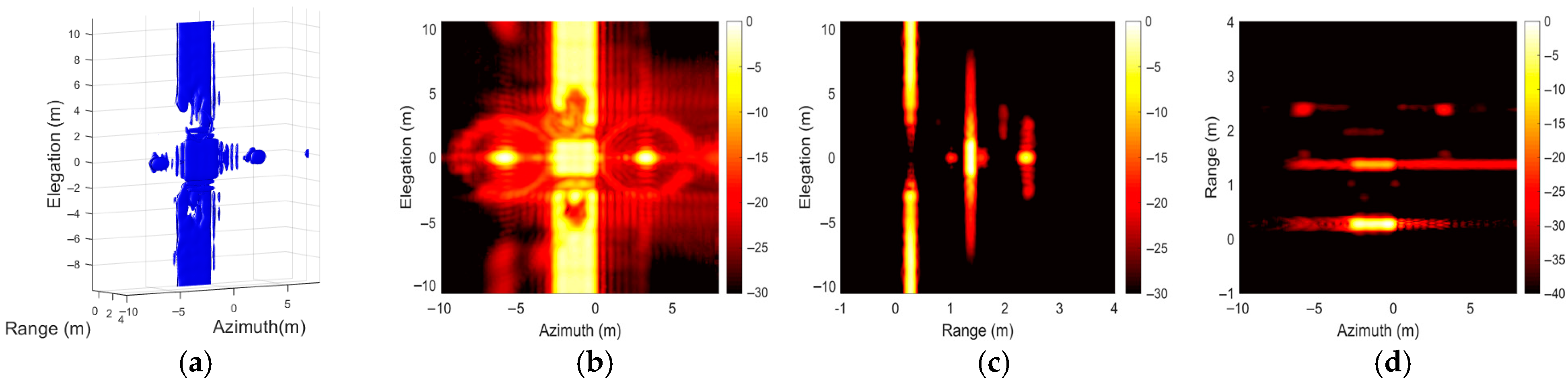 24]. By integrating the characteristics of ultra-wideband signals with sparse array design techniques, this approach can reduce the number of array elements while suppressing grating lobe levels. The pixel-by-pixel coherent processing in BP imaging incurs a substantial computational burden. This high computational cost hinders its application in scenarios requiring high real-time performance.