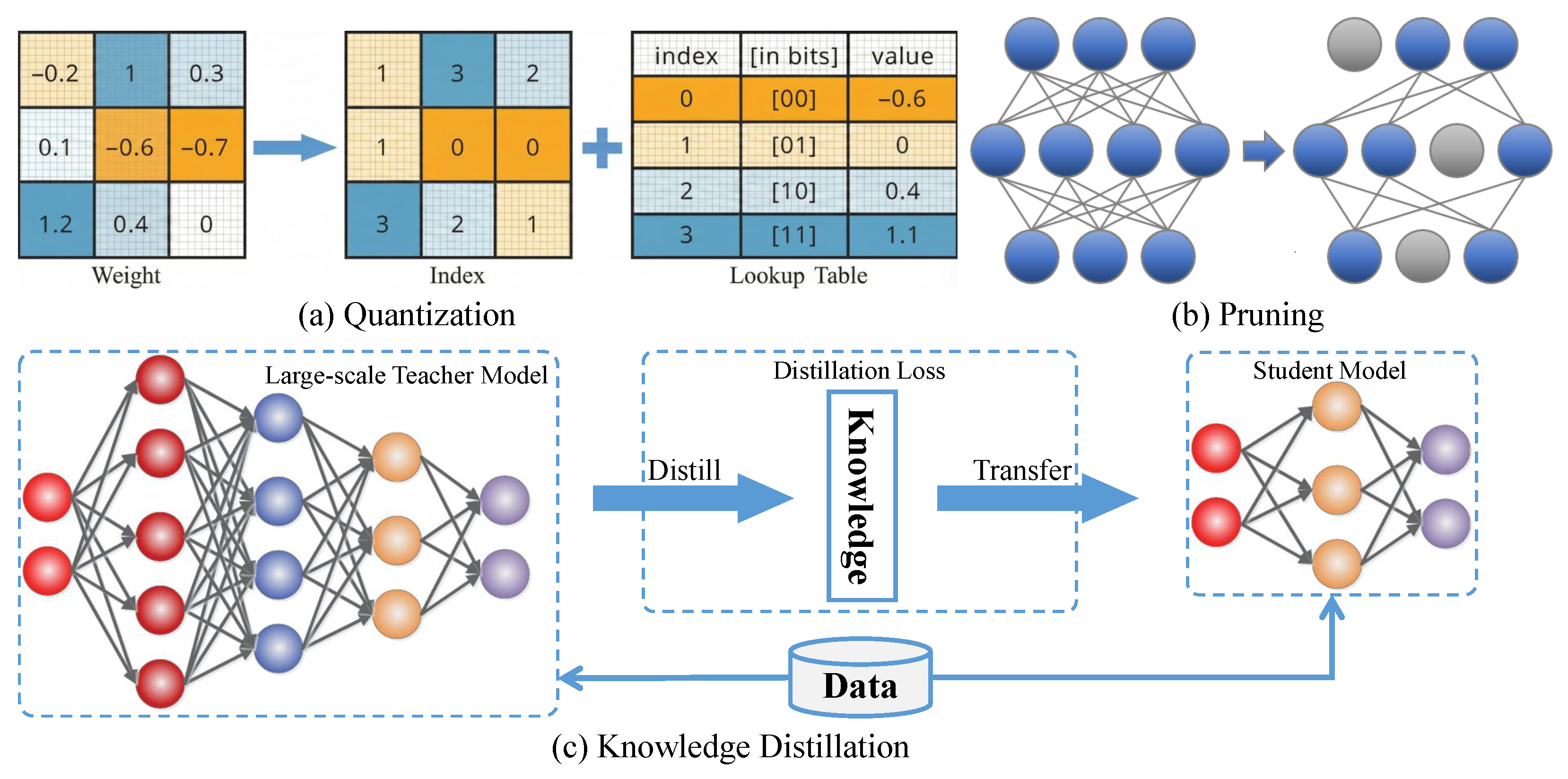 The model compression techniques discussed above have been applied in various RS tasks to enable efficient deployment and near-real-time inference onboard resource-constrained devices.