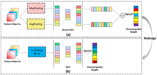 The channel attention (CA) of our CSHA. (a) Channel attention of the typical CBAM [32]. (b) Redesigned channel attention of our CSHA.