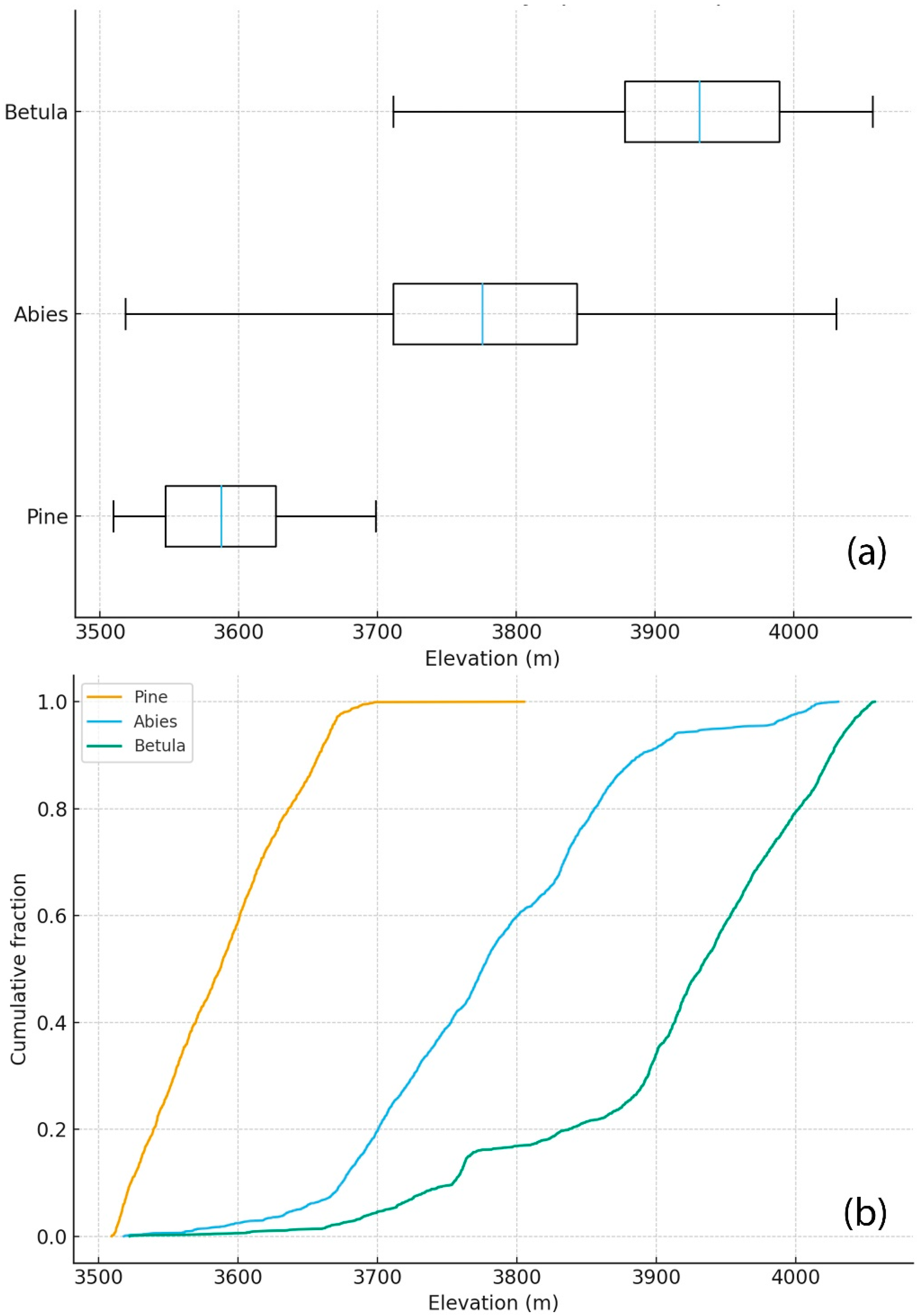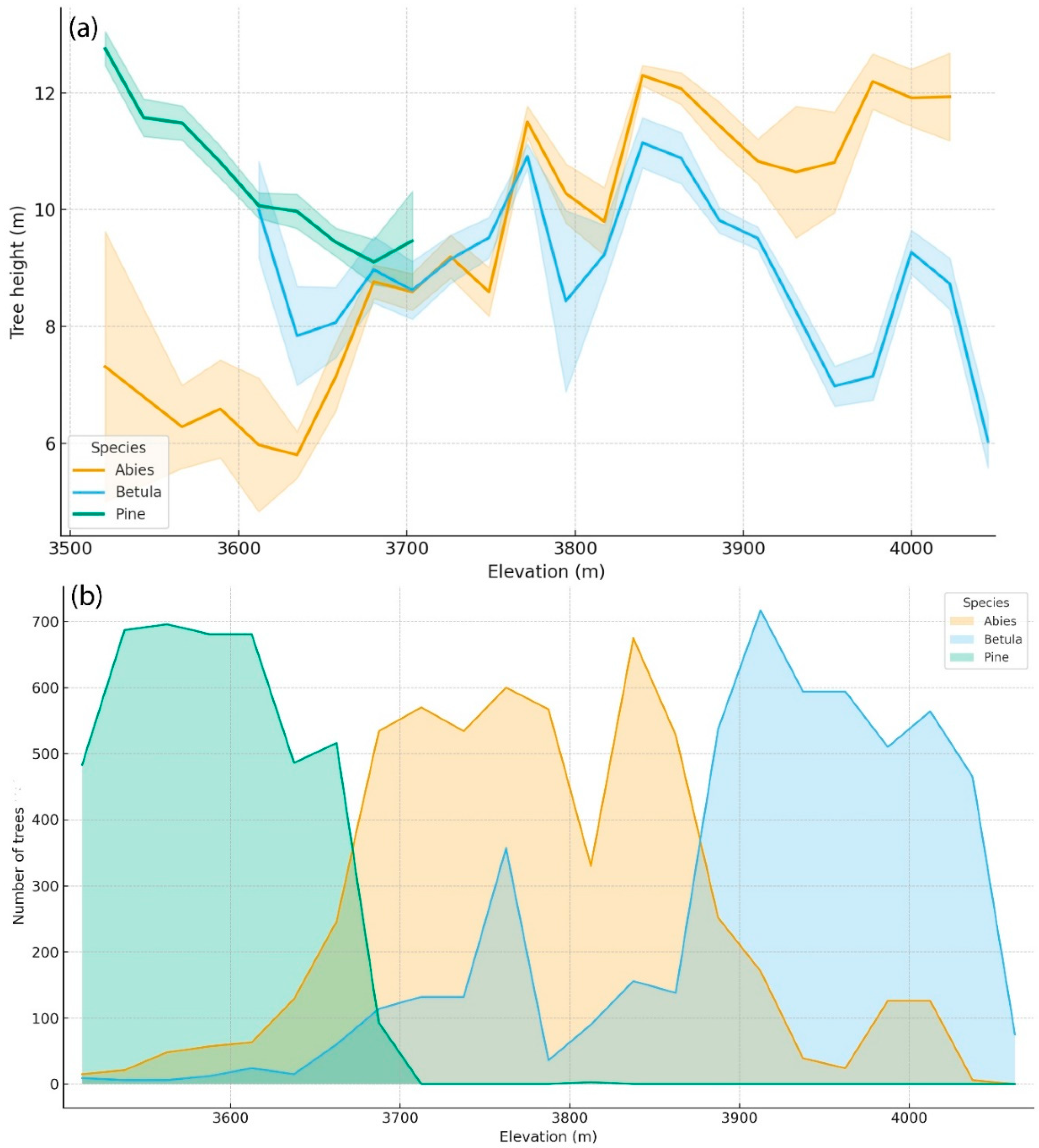 - Sigdel, S.R.; Zheng, X.; Babst, F.; Camarero, J.J.; Gao, S.; Li, X.; Lu, X.; Pandey, J.; Dawadi, B.; Sun, J.; et al. Accelerated succession in Himalayan alpine treelines under climatic warming. Nat. Plants 2024, 10, 1909–1918. [Google Scholar] [CrossRef]