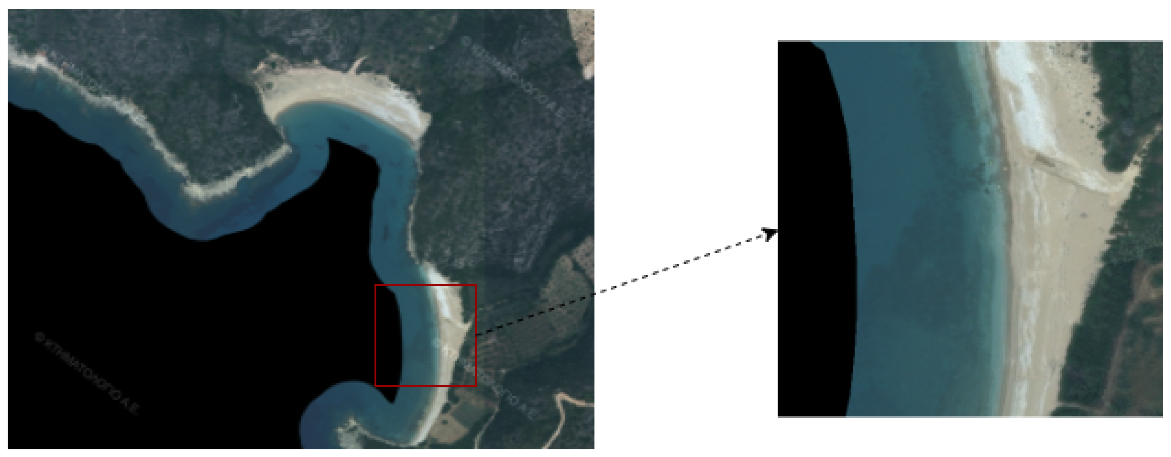 To evaluate cross-regional generalization, a complementary dataset was constructed using high-resolution aerial imagery (25 cm per pixel) from sections of the southwestern Greek coastline, obtained from the Hellenic Cadastre [
