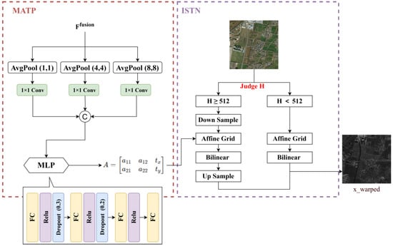 Architecture of the multi-scale affine transformation prediction (MATP) module and improved spatial transformer (ISTP) module.
