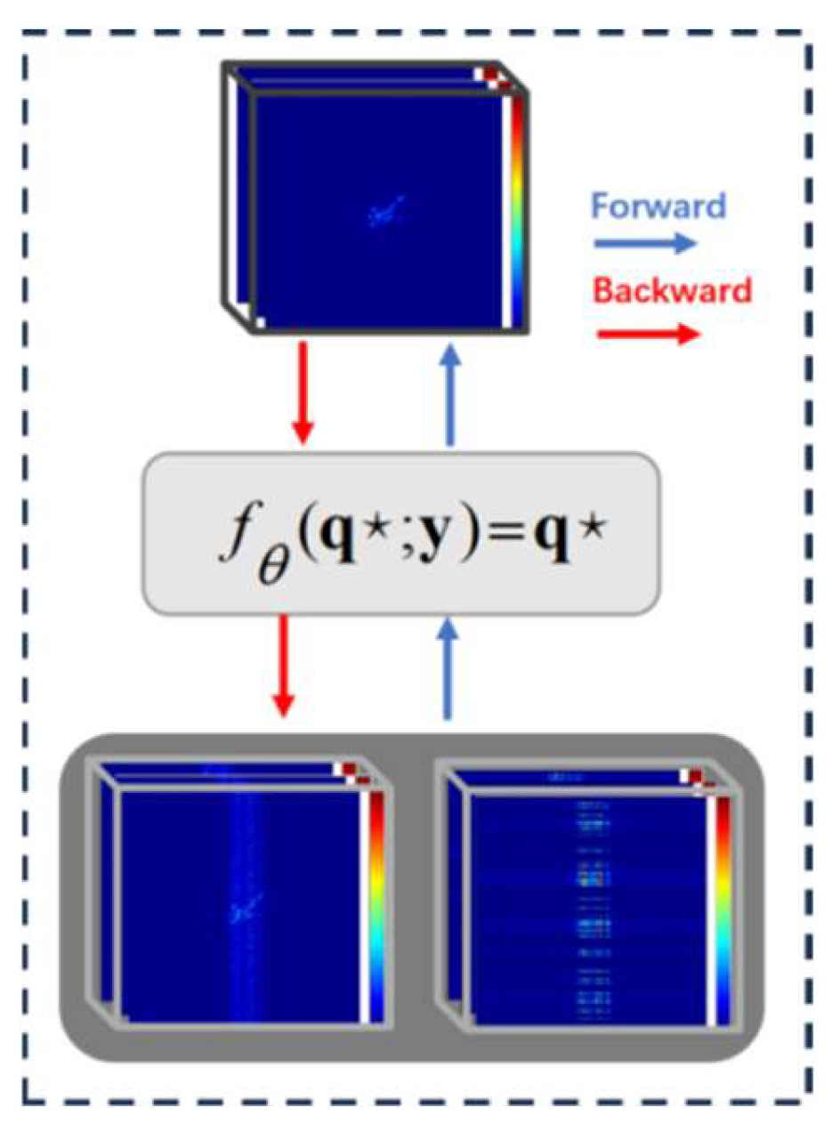 - We propose an ADnDEQ framework for sparse-aperture ISAR imaging, which reformulates an ADMM-based unfolding network as an implicit equilibrium problem. This design avoids explicit layer stacking and enables constant-memory inference with a single-layer equilibrium representation.