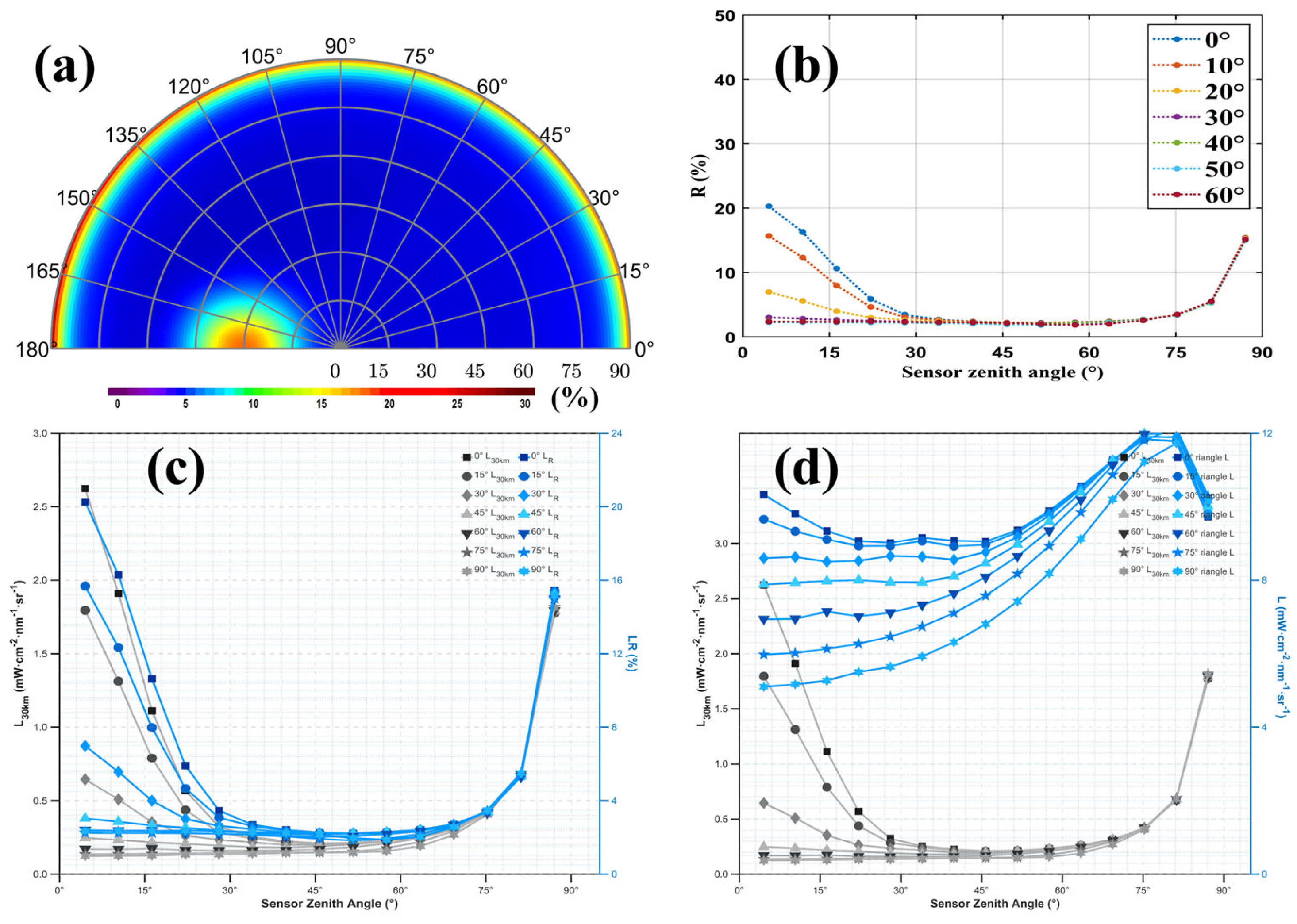 | Viewing zenith angle | 0–90° | |