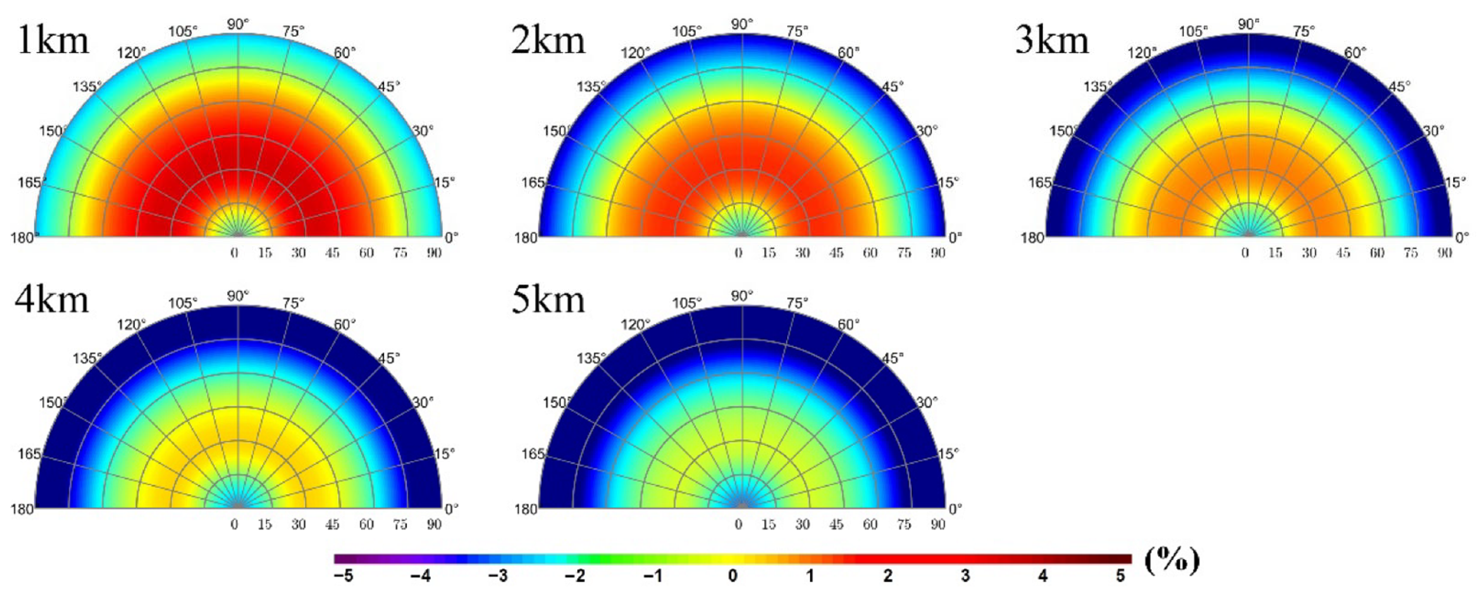 | LR (%) | 1 km | 2 km | 3 km | 4 km | 5 km |