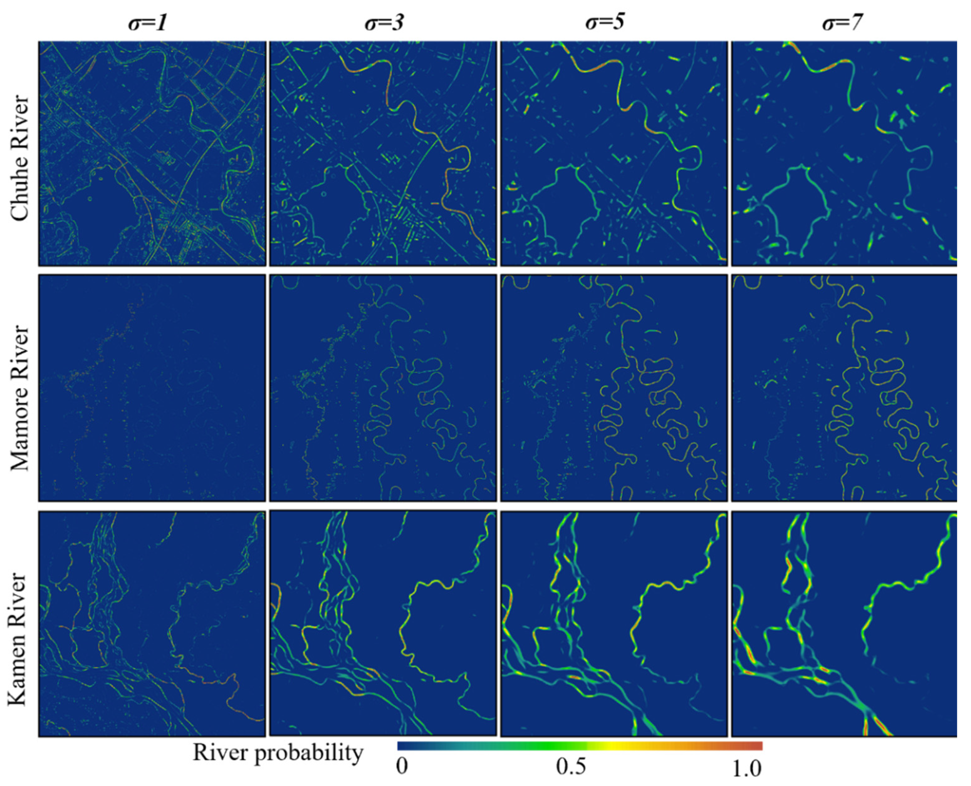 4.2. River Extraction Based on Multi-Scale Probabilistic and Directional Constraints