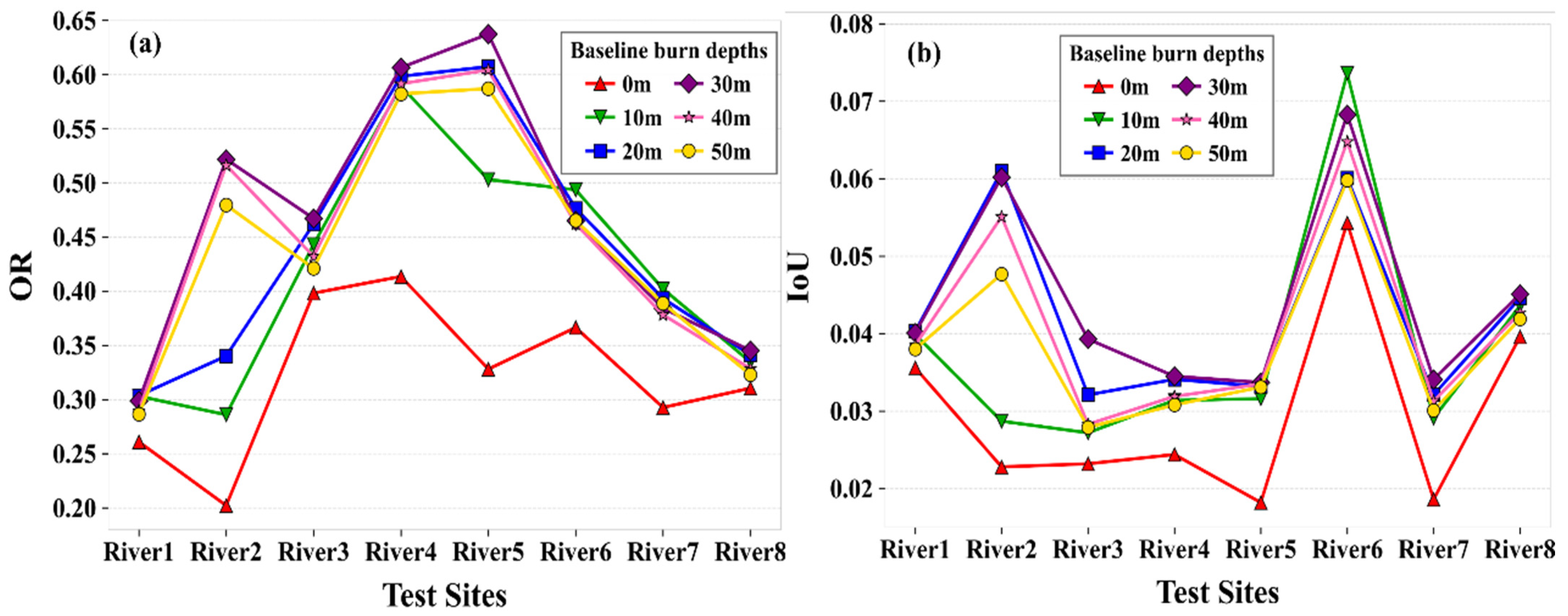 5.2.2. Quantitative Assessment of Extracted River Networks