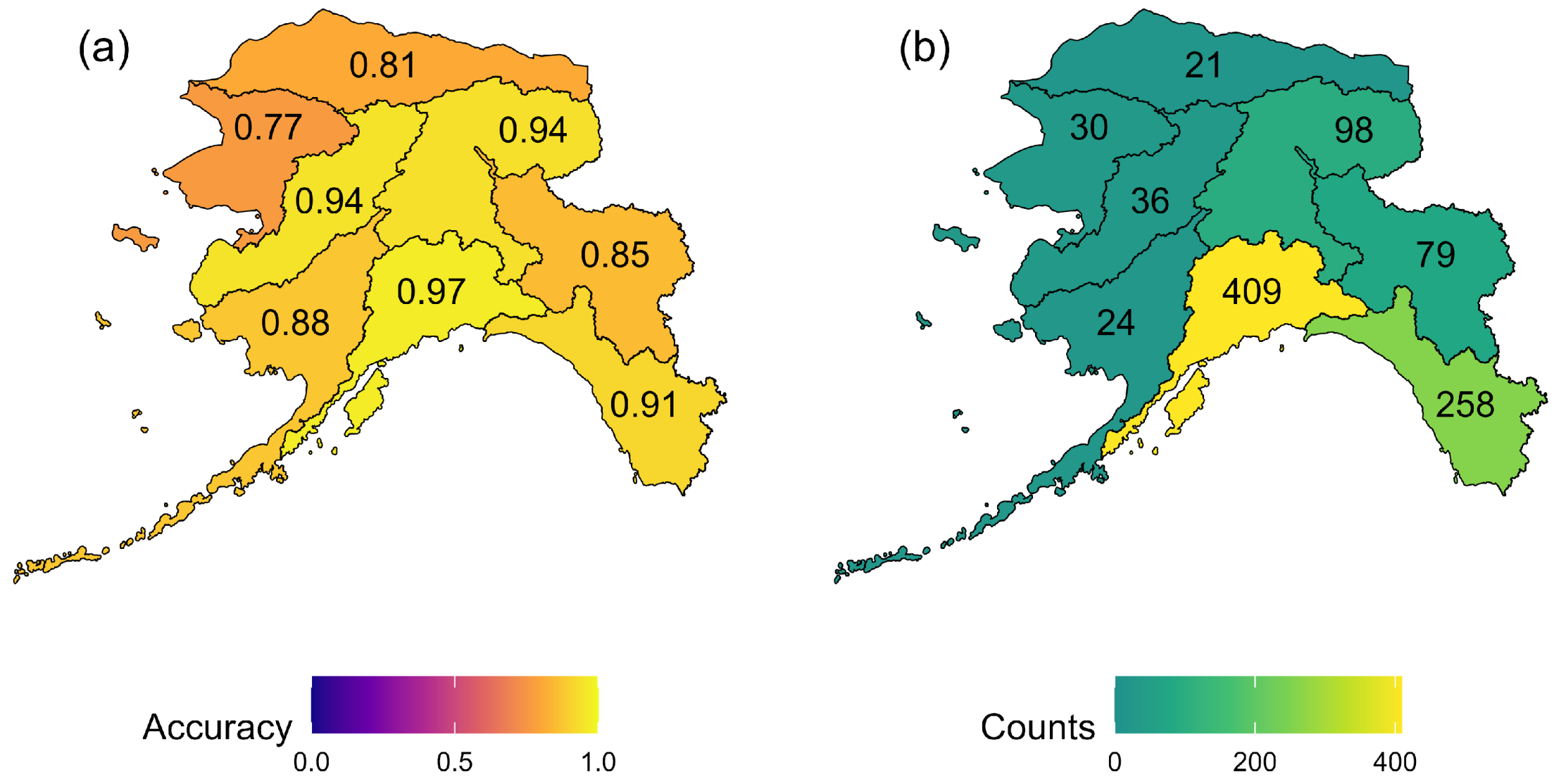 - Our baseline CNN model for detecting rapids yielded overall accuracy and F1 scores of 0.93, implying that this approach could facilitate more extensive, less labor-intensive inventory and monitoring of river rapids.