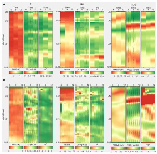 Finally, spatial differences between Nudging and Var forecasts, such as RMSVD, VCC, and VR2 (see Section S1.2.1), are compared. Rotunno–Klemp–Weisman (short for RKW hereafter) environmental conditions [66,67] are analyzed to clarify how FY4A 3D wind assimilation influences NFV nowcasting through unobserved mesoscale systems and thermodynamic conditions during this rainstorm.