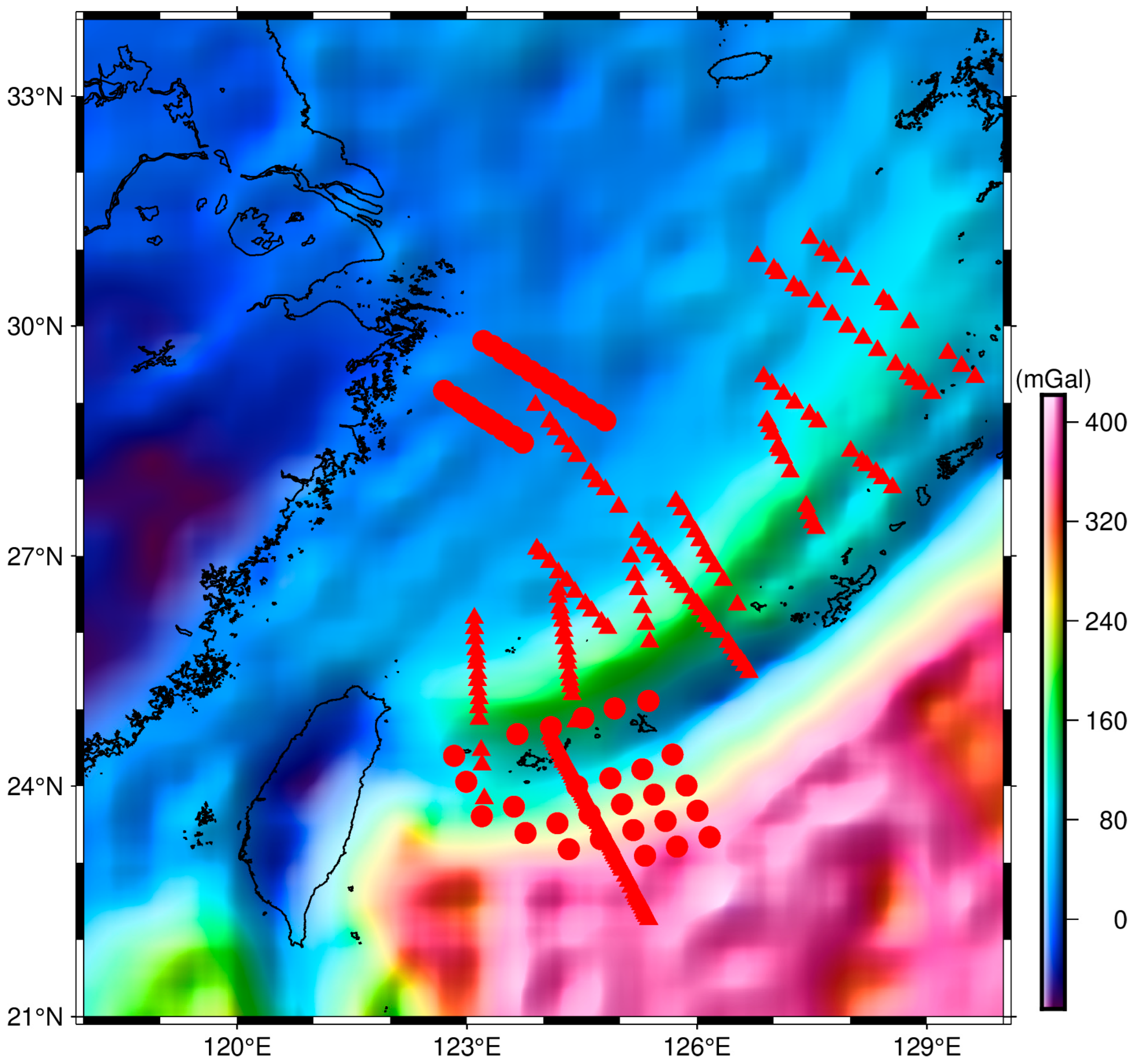 - Chen, Z.; Xu, G.; Kubeka, Z.O. The Crustal Structure Inferred from Gravity Data and Seismic Profiles beneath the Okinawa Trough in the Western Pacific. J. Asian Earth Sci. 2022, 238, 105375. [Google Scholar] [CrossRef]