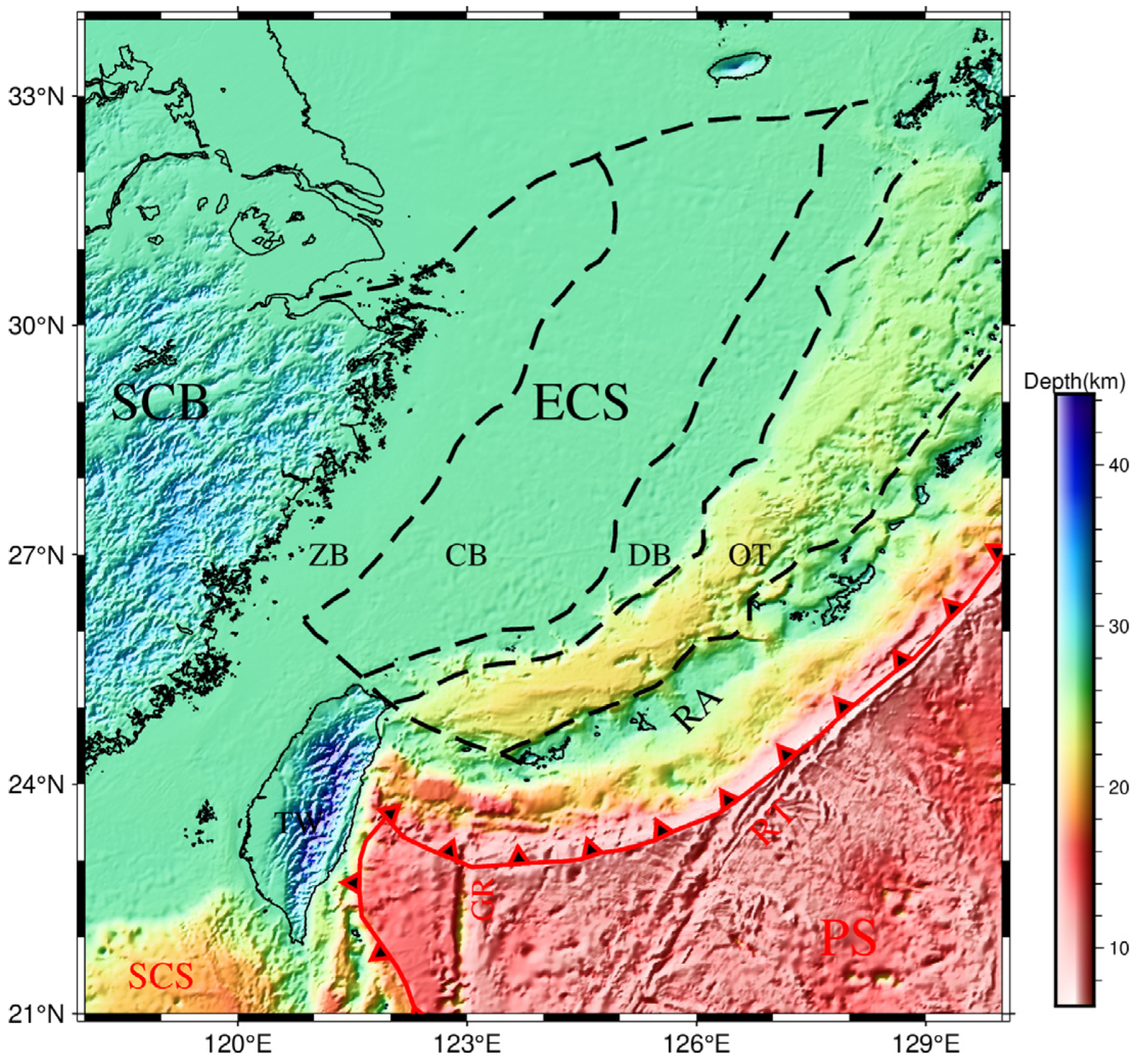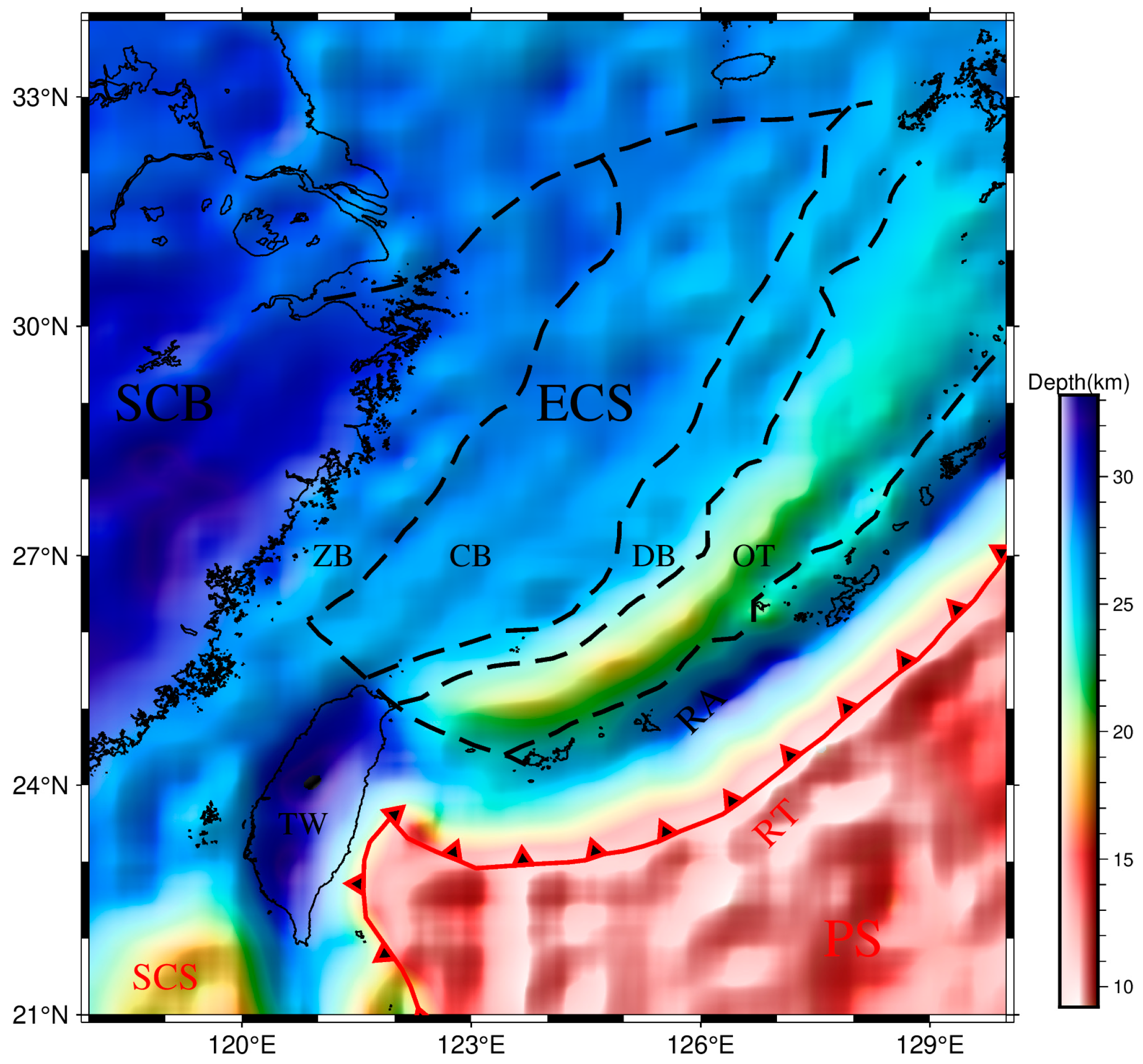 4.2. The Moho Topography of ECS