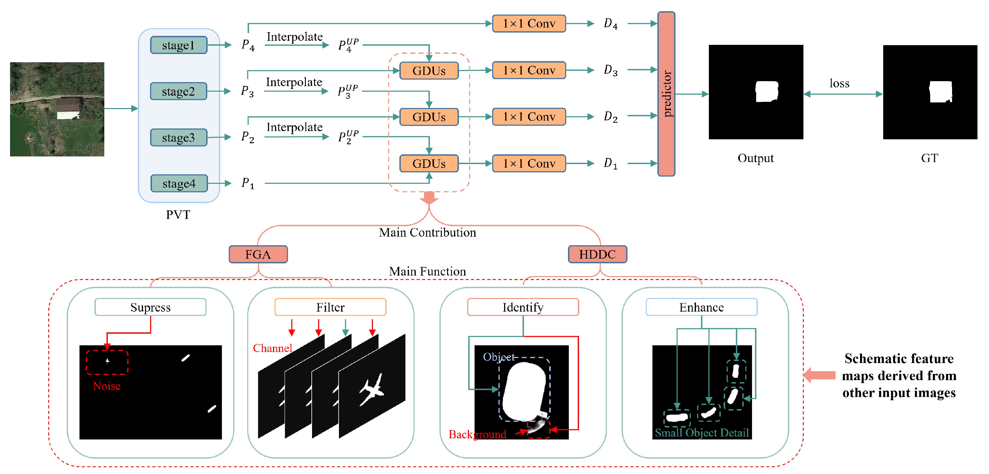 is uniformly reduced to 32. The GDU suppresses noise, enhances key features, improves foreground-background distinction, and captures fine-grained details. Its structure is shown in