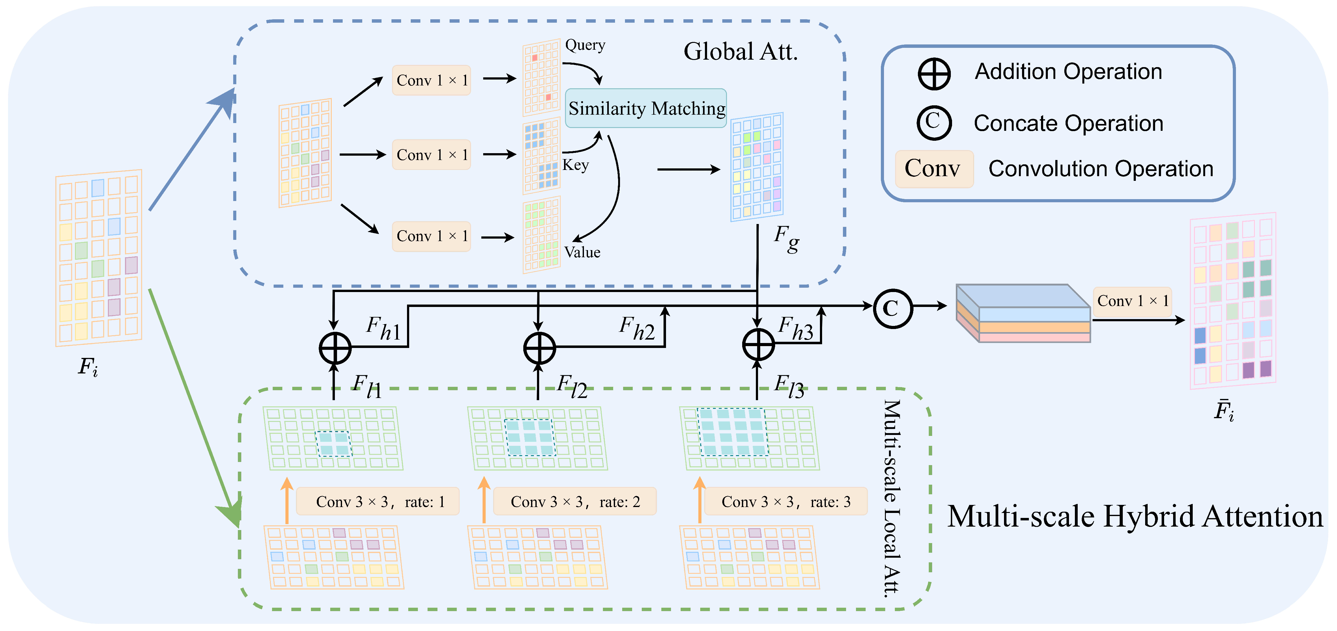 - We propose a Multi-scale Hybrid Attention module that integrates multi-scale local attention and global attention to enhance the feature representation of tiny objects.