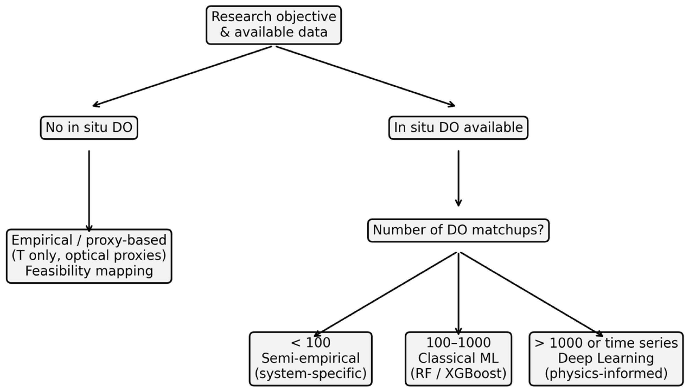 - Machine learning and deep learning models significantly improve DO prediction when supported by high-quality in situ data.