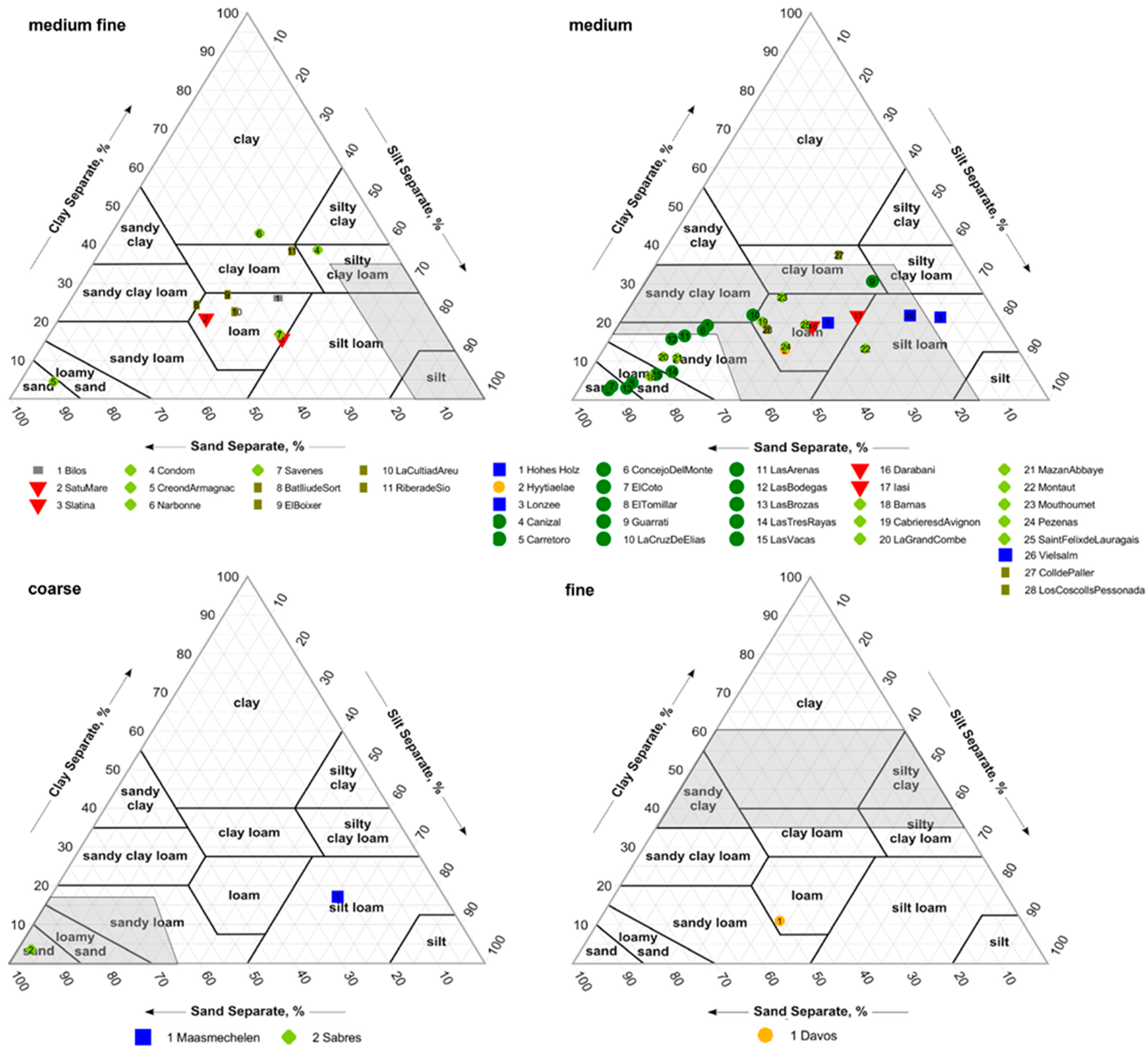 - Calvet, J.-C.; Fritz, N.; Berne, C.; Piguet, B.; Maurel, W.; Meurey, C. Deriving Pedotransfer Functions for Soil Quartz Fraction in Southern France from Reverse Modeling. Soil 2016, 2, 615–629. [Google Scholar] [CrossRef]