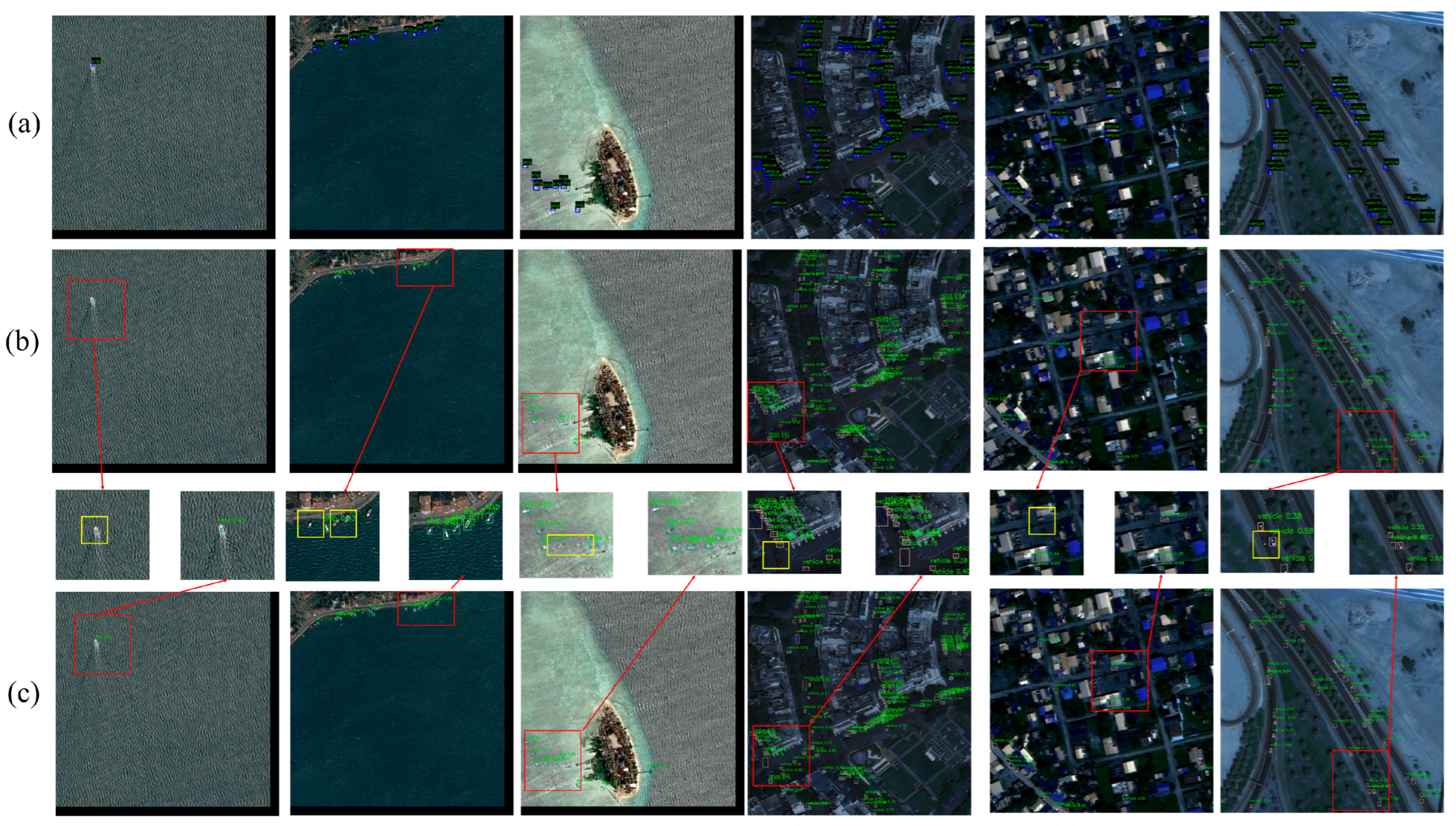 - Fan, X.; Hu, Z.; Zhao, Y.; Chen, J.; Wei, T.; Huang, Z. A small ship object detection method for satellite remote sensing data. IEEE J. Sel. Top. Appl. Earth Obs. Remote Sens. 2024, 17, 11886–11898. [Google Scholar] [CrossRef]