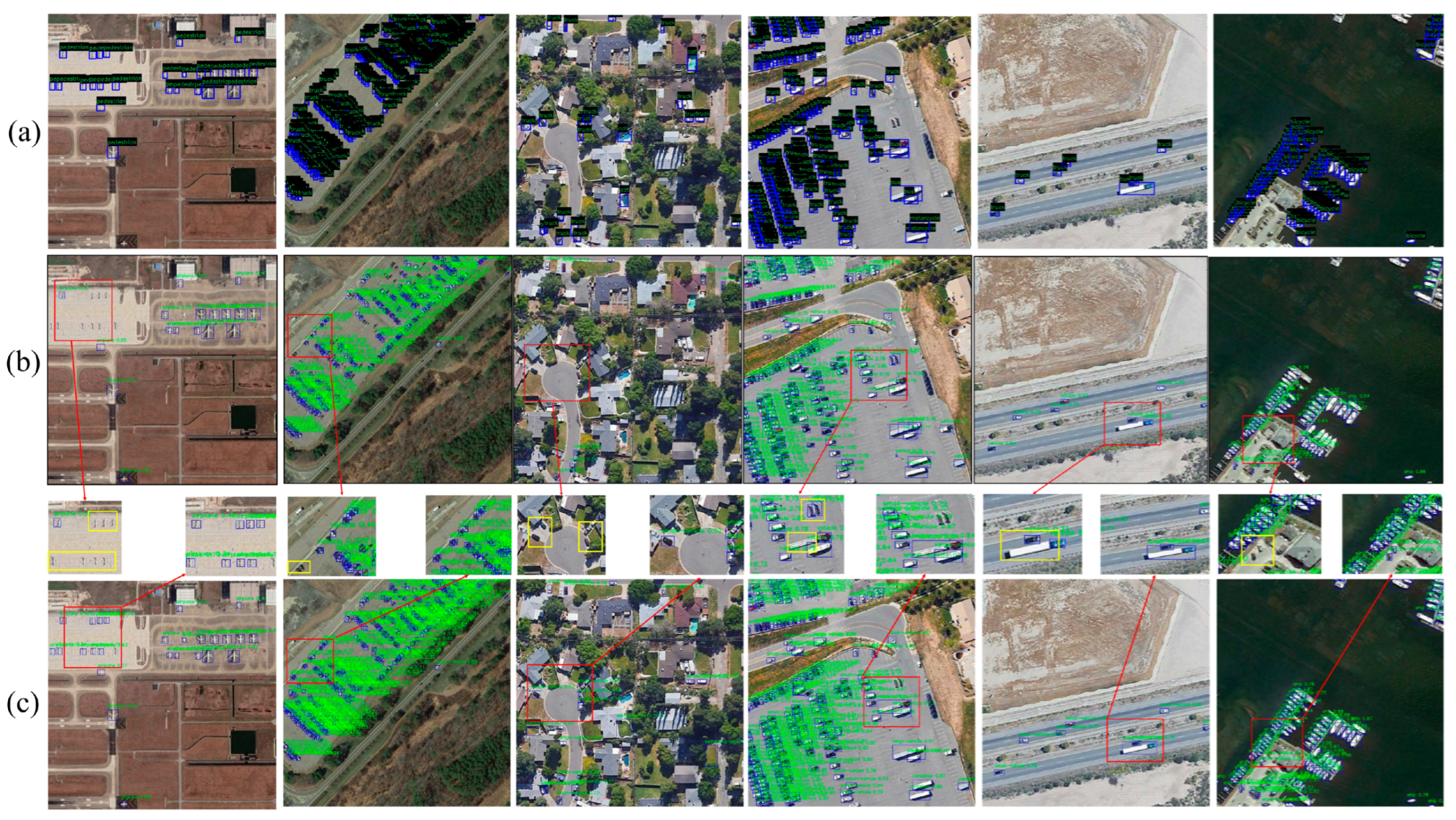 - Liu, C.; Gao, G.; Huang, Z.; Hu, Z.; Liu, Q.; Wang, Y. YOLC: You Only Look Clusters for Tiny Object Detection in Aerial Images. arXiv 2024, arXiv:2404.06180. [Google Scholar] [CrossRef]