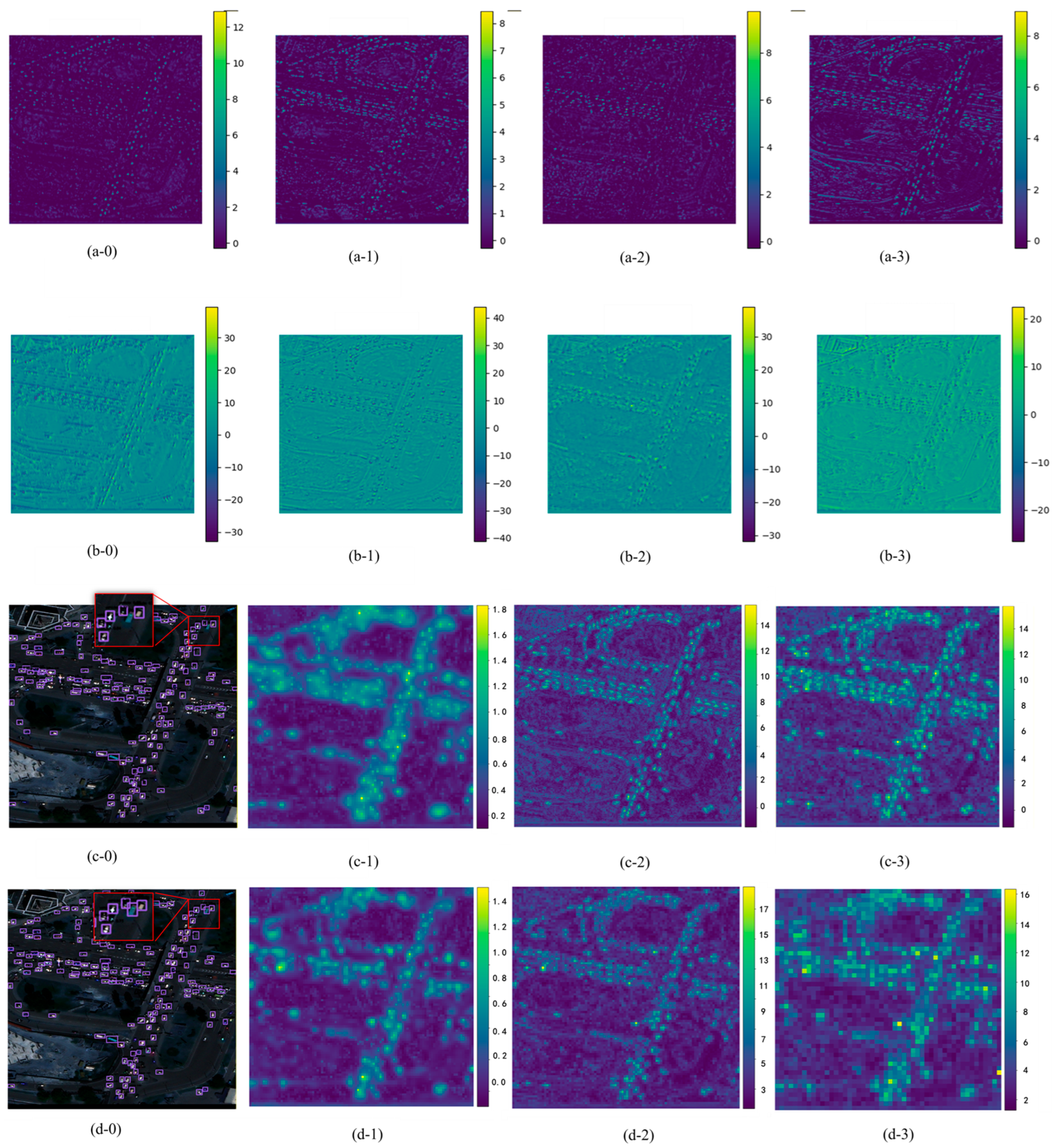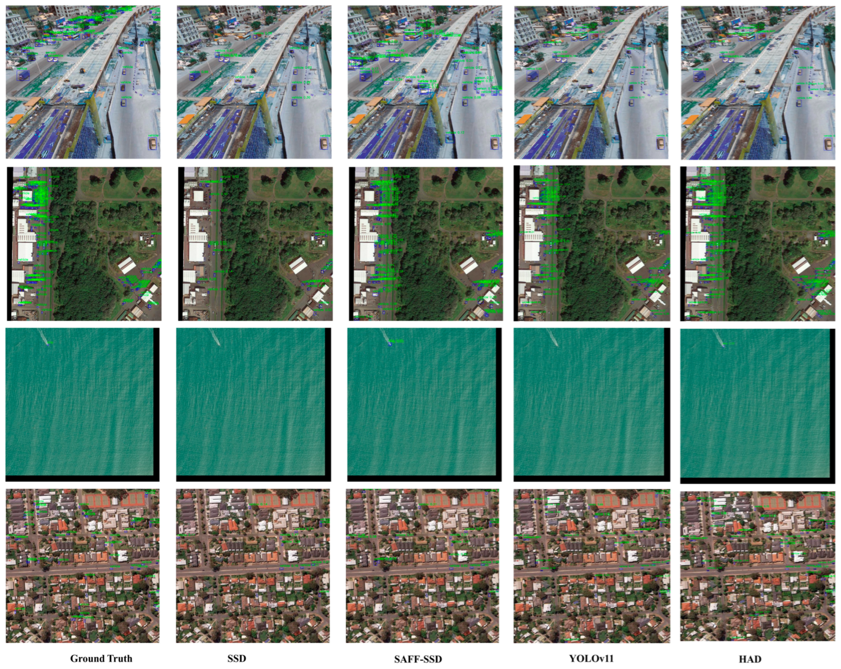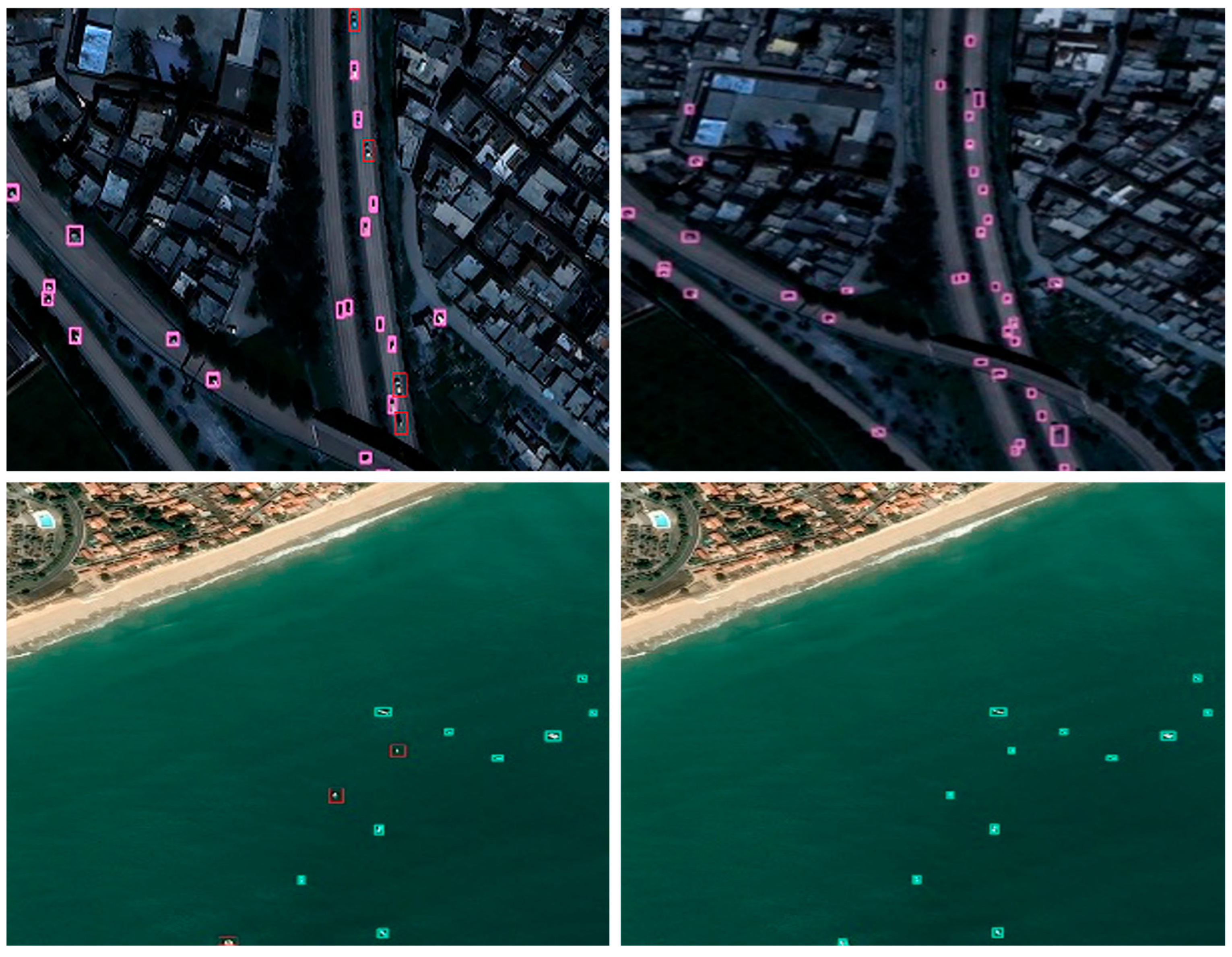 - The proposed hierarchical attention-driven framework integrating statistically constrained pre-extraction, top–down guidance, and bottom–up fusion is validated as an effective solution for the specific challenges of small object detection in remote sensing.