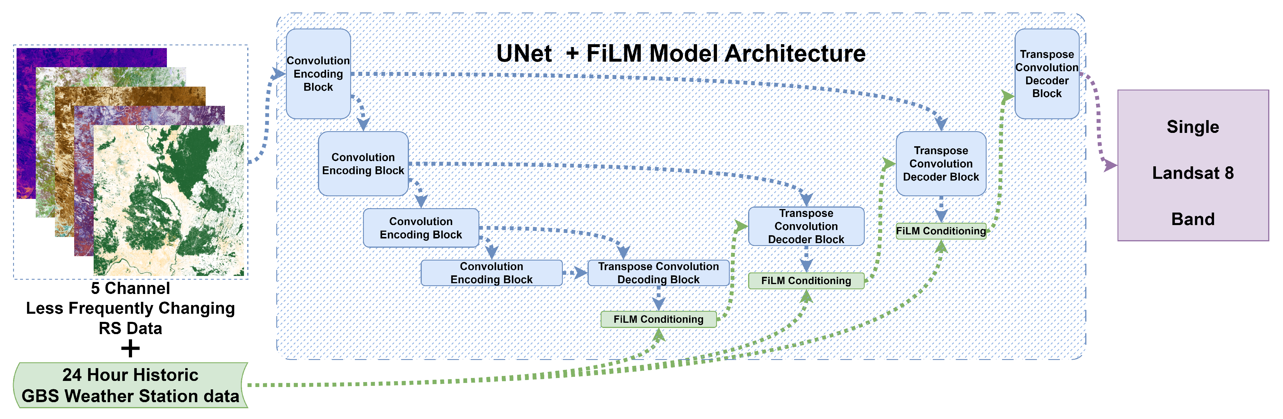 | Generated Landsat 8 Band | UNet + FiLM | ||
