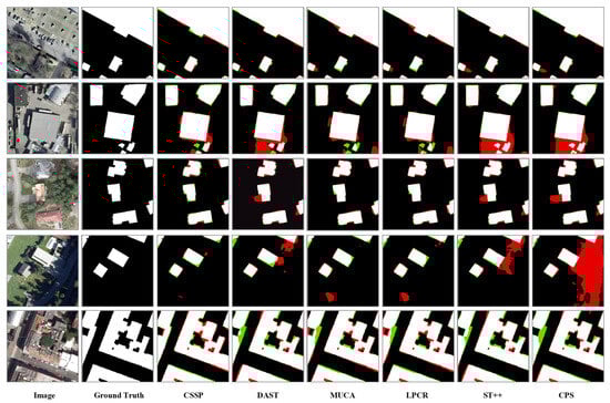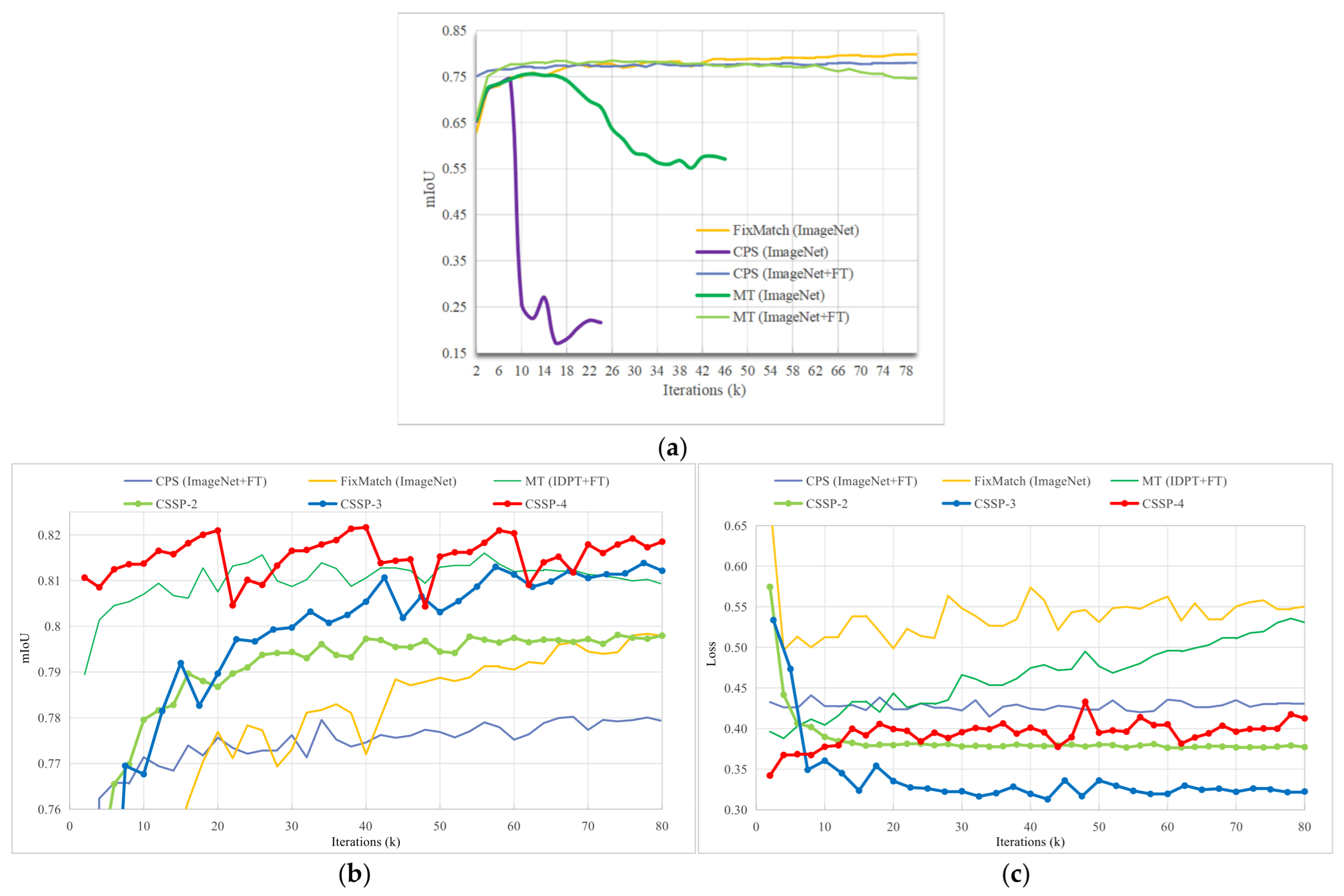 - Chen, X.; Yuan, Y.; Zeng, G.; Wang, J. Semi-Supervised Semantic Segmentation with Cross Pseudo Supervision. In Proceedings of the 2021 IEEE/CVF Conference on Computer Vision and Pattern Recognition (CVPR); IEEE: New York, NY, USA, 2021; pp. 2613–2622. [Google Scholar]