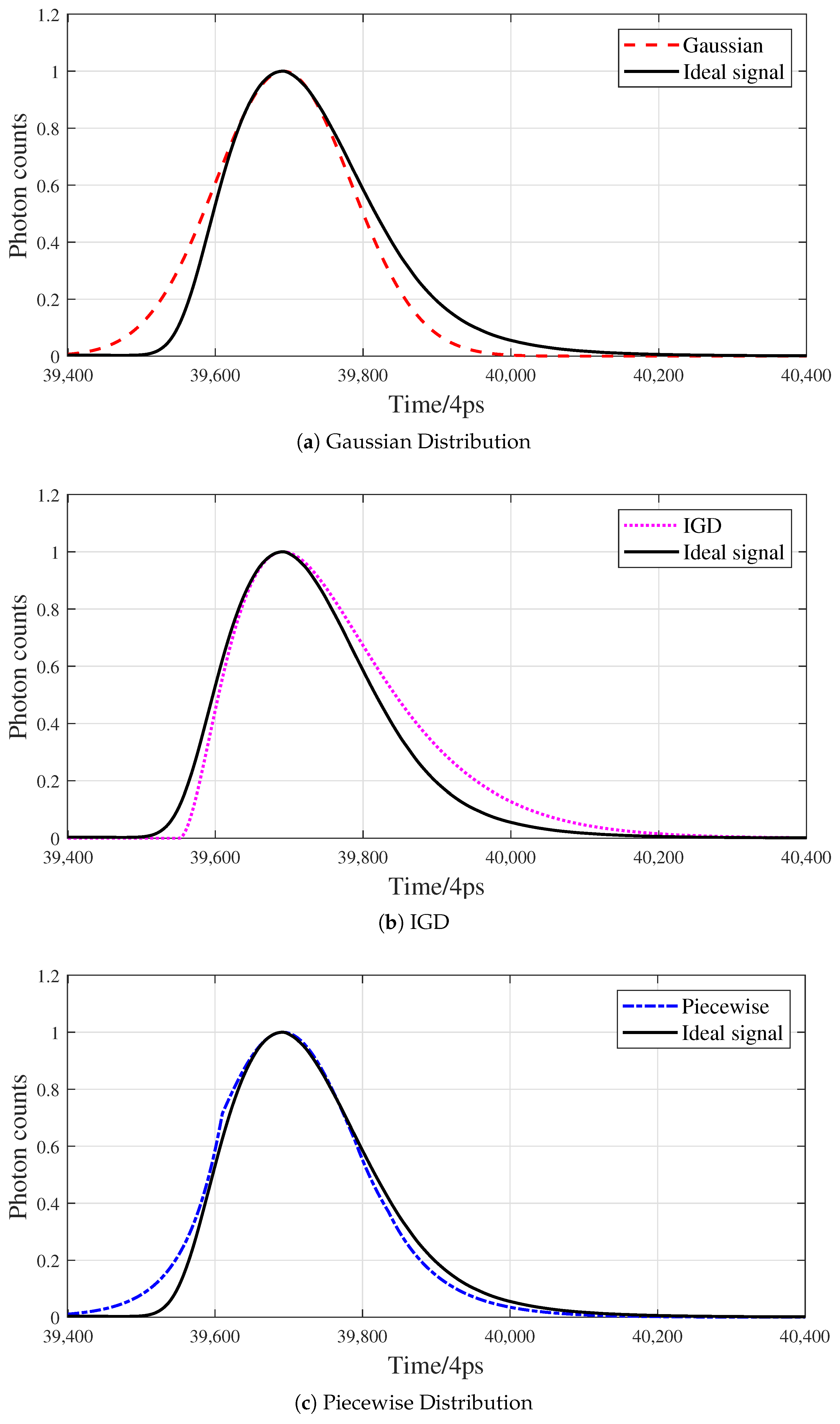 - Greeley, A.P.; Neumann, T.A.; Kurtz, N.T.; Markus, T.; Martino, A.J. Characterizing the system impulse response function from photon-counting LiDAR data. IEEE Trans. Geosci. Remote Sens. 2019, 57, 6542–6551. [Google Scholar] [CrossRef]