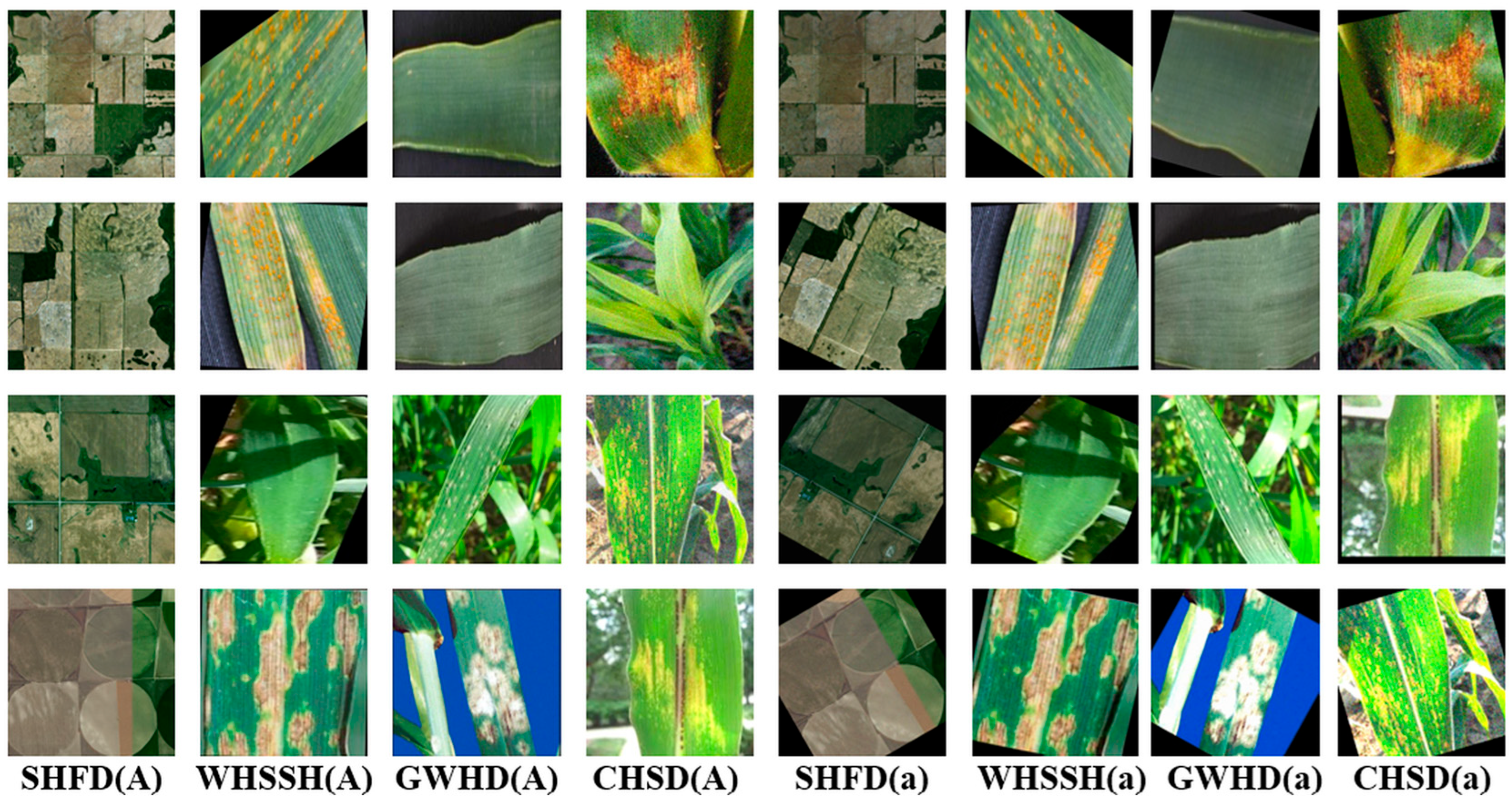 - Representativeness of Data Sources: The combination includes both internationally recognized public benchmark datasets (GWHD, CHSD), ensuring comparability with existing research, and non-public datasets (SHFD, WHSSH) specifically constructed to reflect the practical demands and challenges in regional monitoring scenarios.