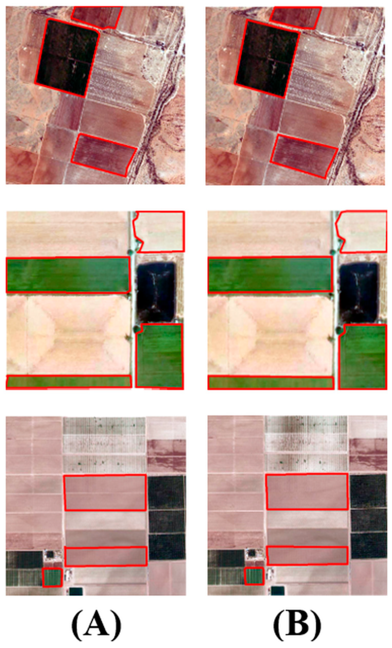 - Zhu, Y.; Pan, Y.; Hu, T.; Zhang, D.; Dai, J. An Integrated Sample-Free Method for Agricultural Field Delineation From High-Resolution Remote Sensing Imagery. IEEE J. Sel. Top. Appl. Earth Obs. Remote Sens. 2025, 18, 13112–13134. [Google Scholar] [CrossRef]