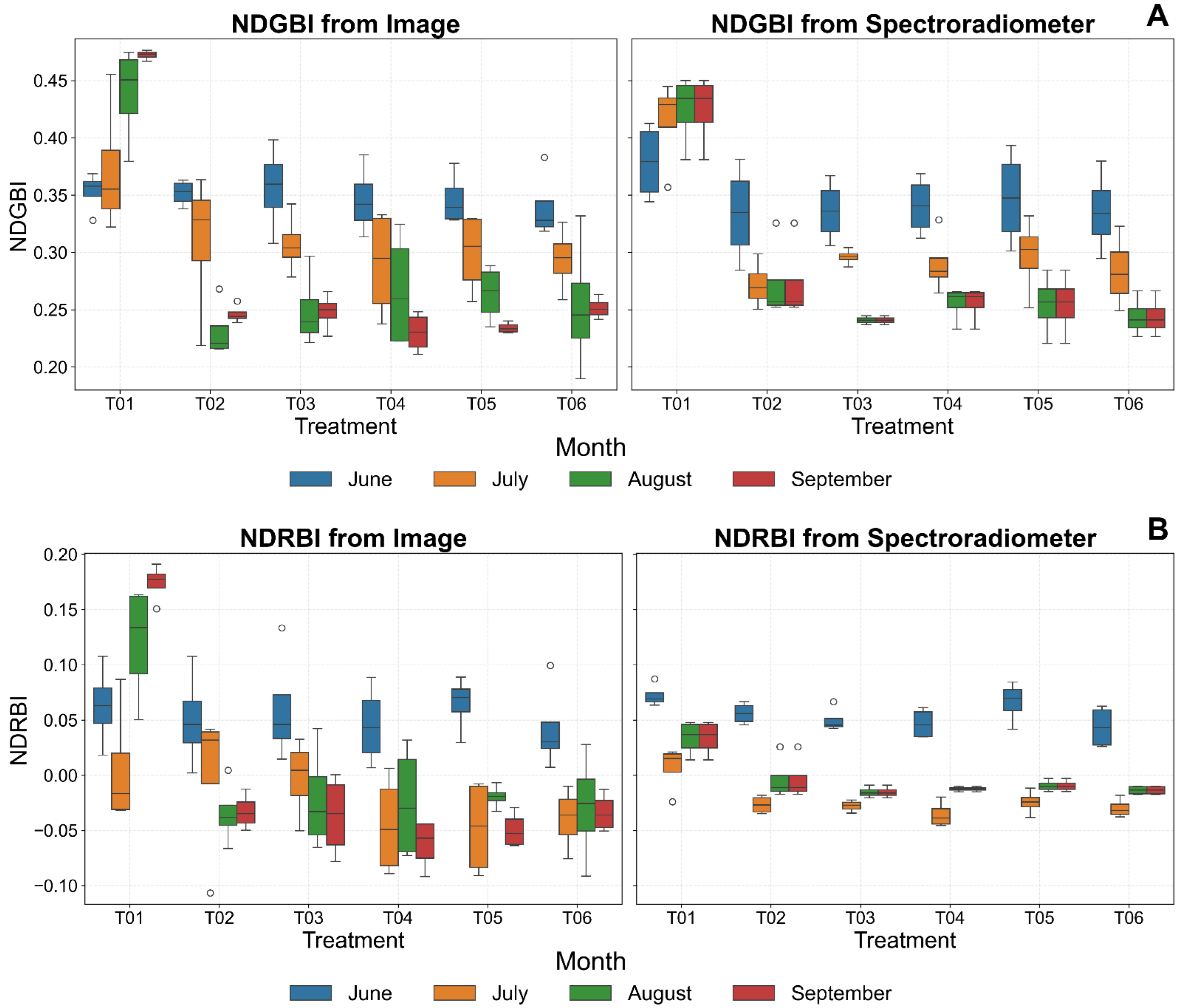 3.1.2. RGB-Based Indices: NDGBI and NDRBI