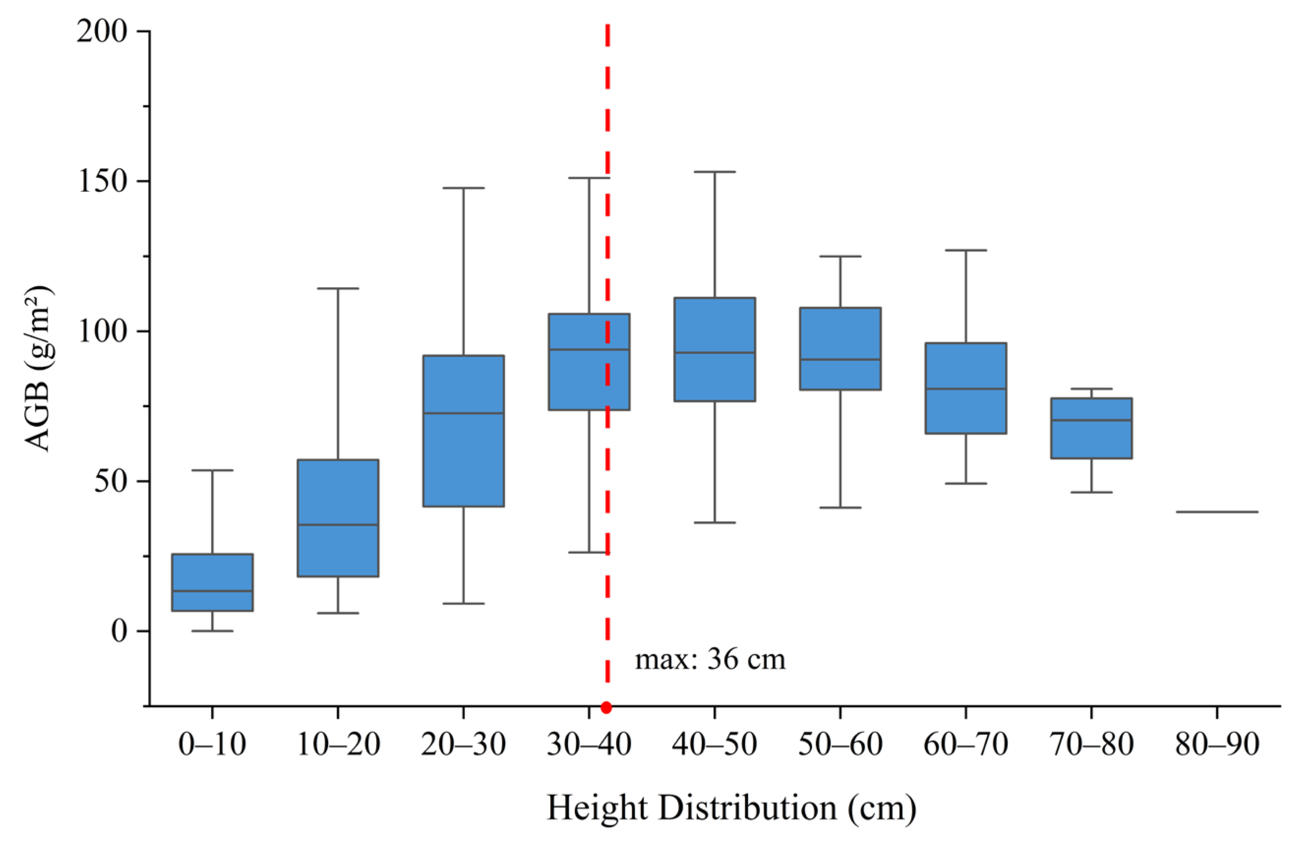 - The identified saturation height provides a practical basis for choosing appropriate vegetation indices according to canopy-height conditions, improving the accuracy and reliability of aboveground biomass (AGB) estimation in a temperate meadow steppe.