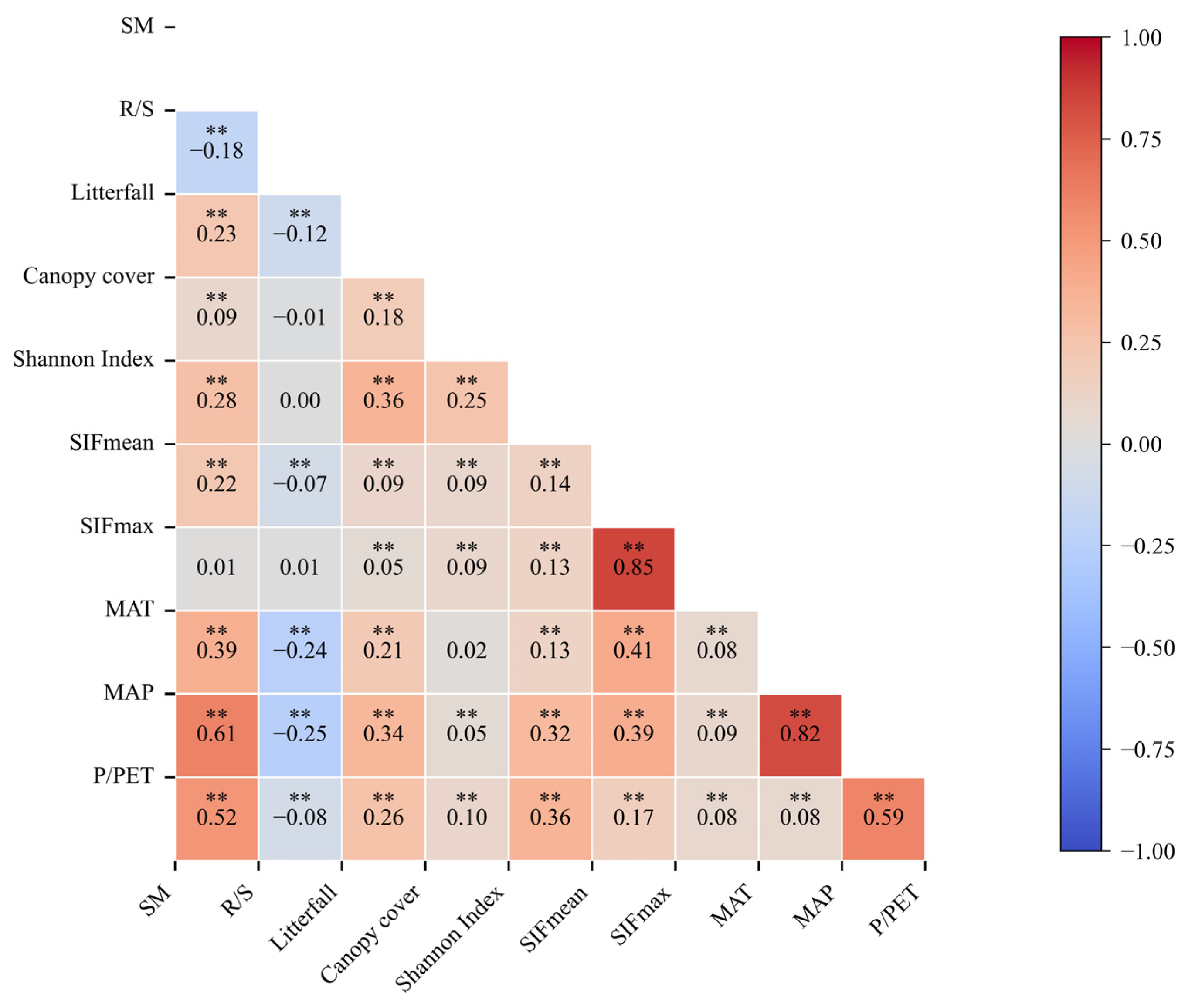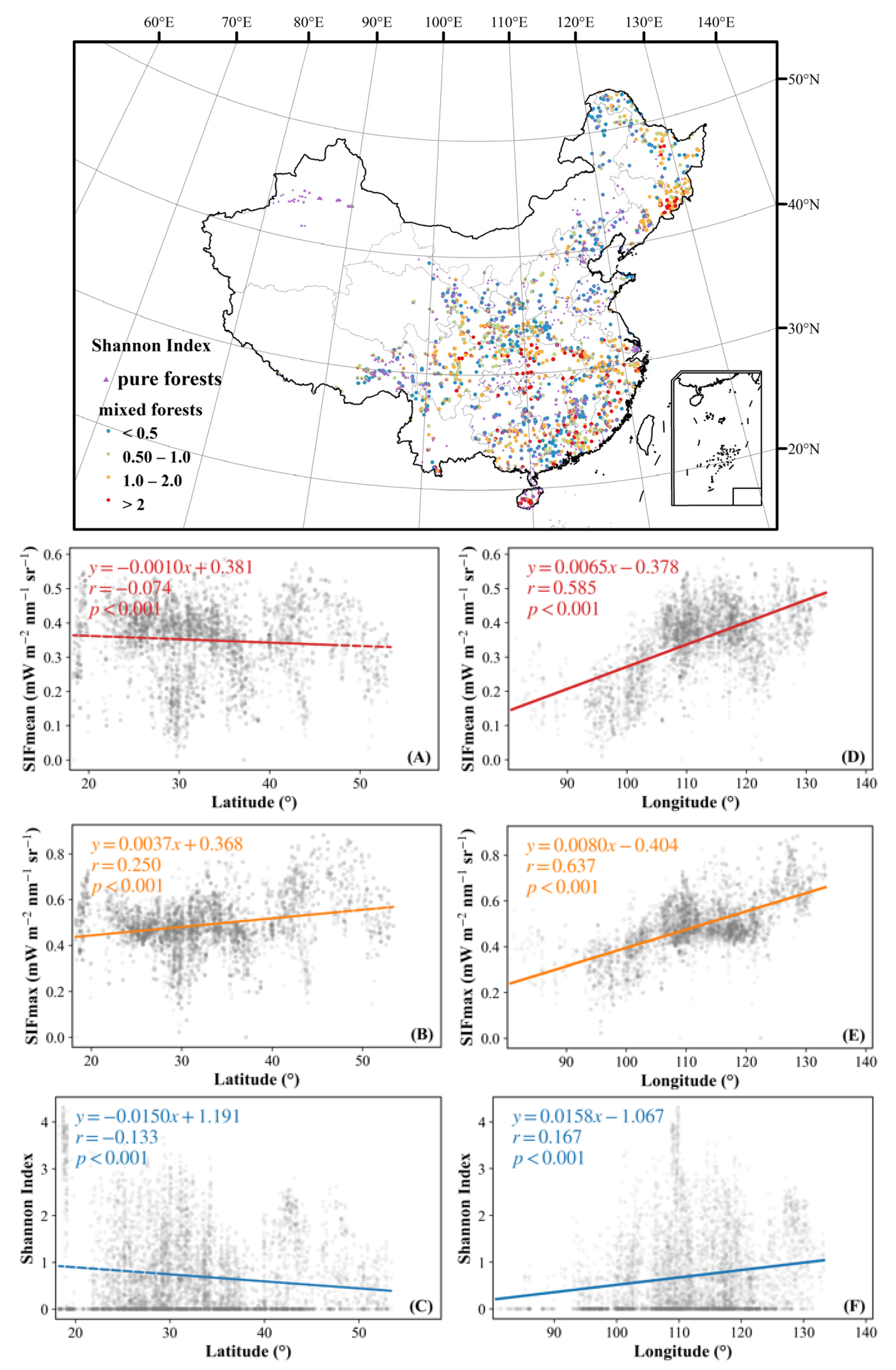 3.1. Spatial Distribution Patterns of Species Diversity and SIF