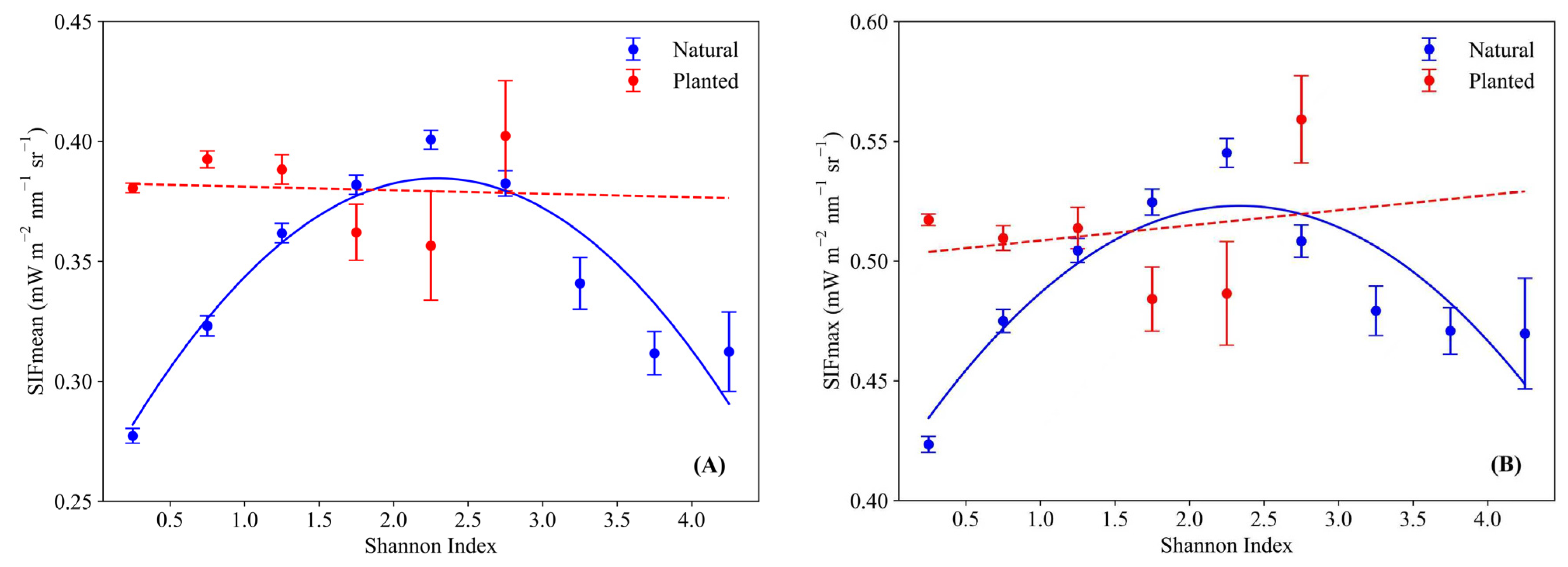 3.2. The Overall Relationship Between Species Diversity and SIF