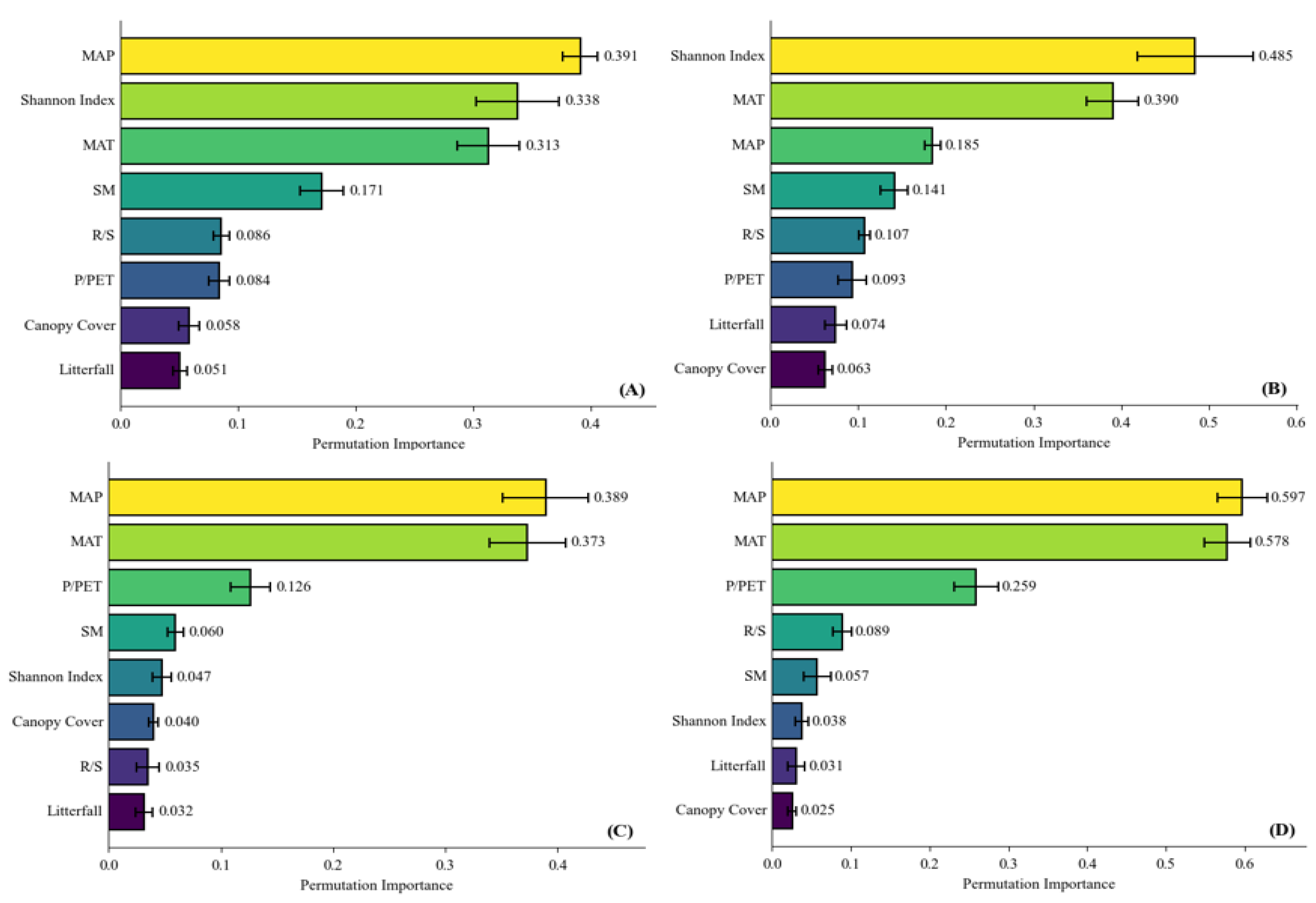 | Vegetation structure factors | Importance Index | 0.263 | 0.239 | 0.122 | 0.229 | 0.349 | 0.146 |