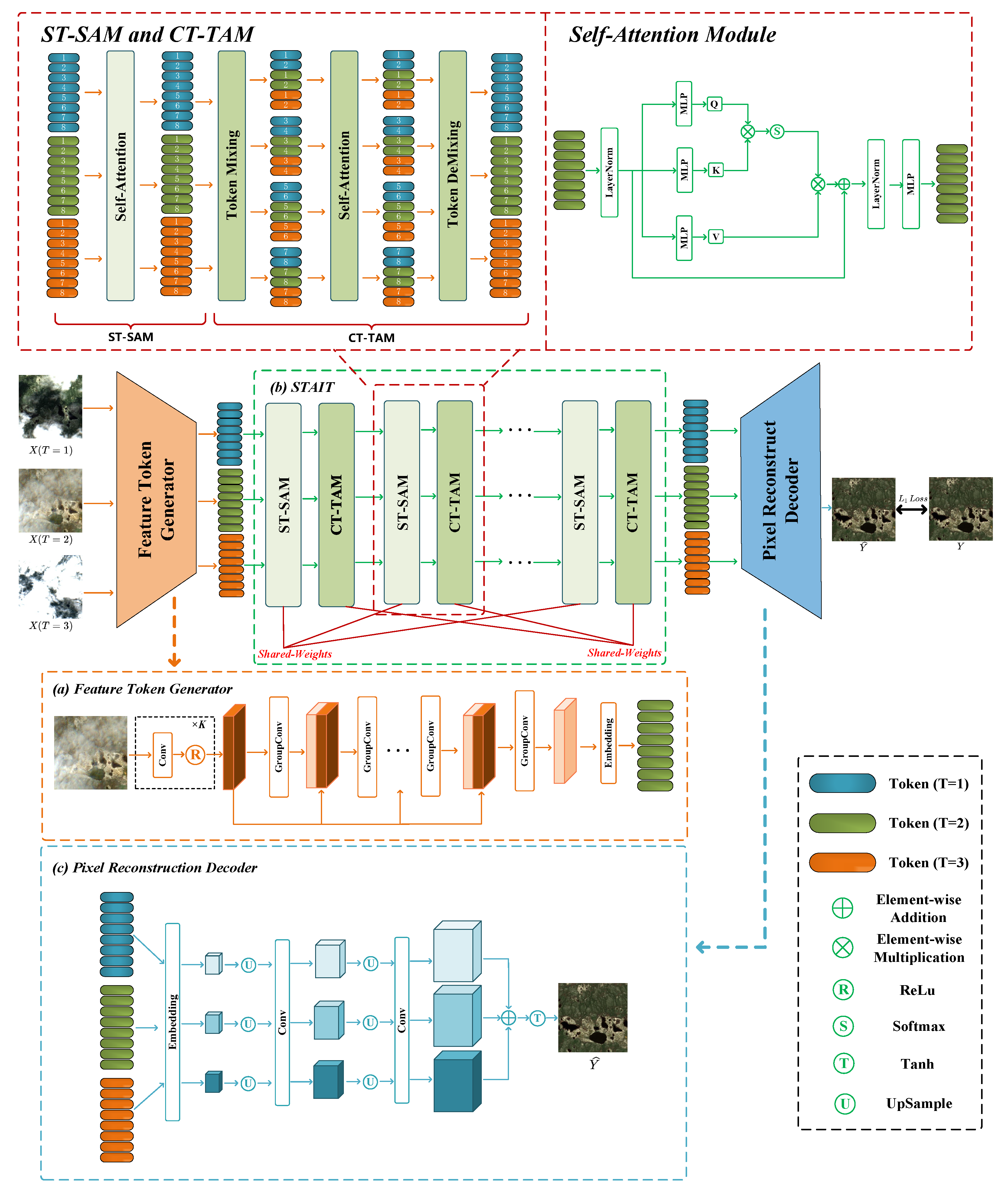 - We propose STAIT to explicitly model the inherent spatio-temporal correlations within multi-temporal data. STAIT innovatively employs an alternating iteration of spatial and temporal attention, enabling precise information aggregation from a global spatio-temporal context. Additionally, our approach offers a more direct and effective pathway to understanding and utilizing the dynamic characteristics of remote sensing imagery.