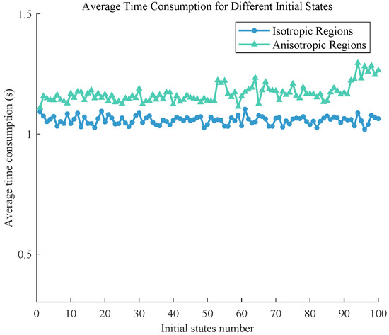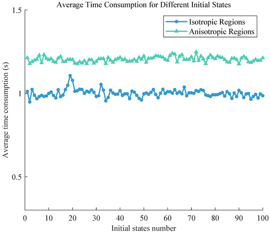 Average time consumption for the PSO algorithm with different initial states in different regions.