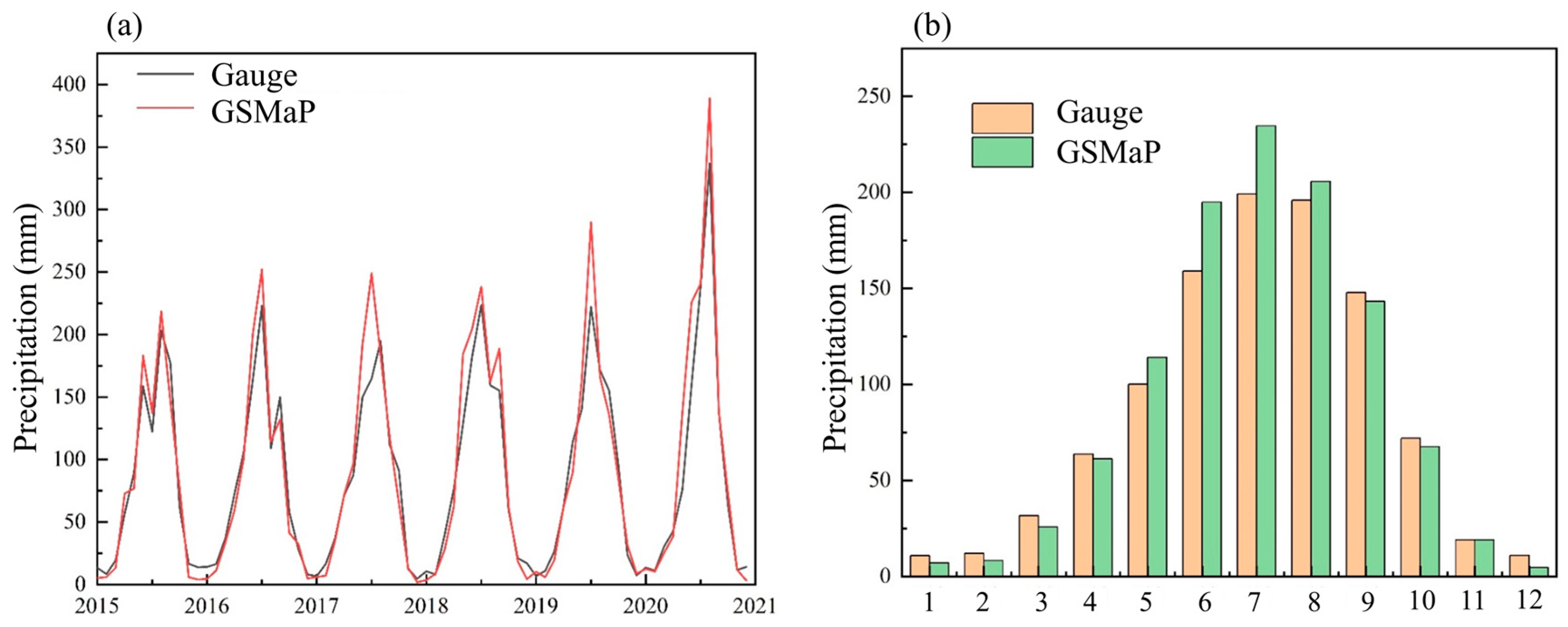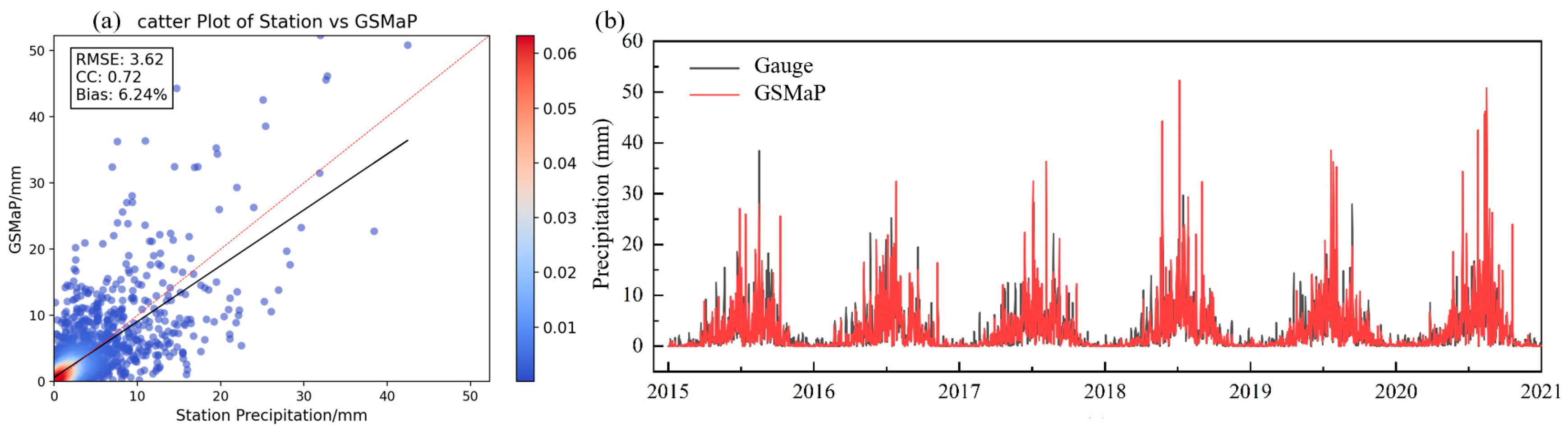 4.1. Accuracy Evaluation of the GSMaP Product