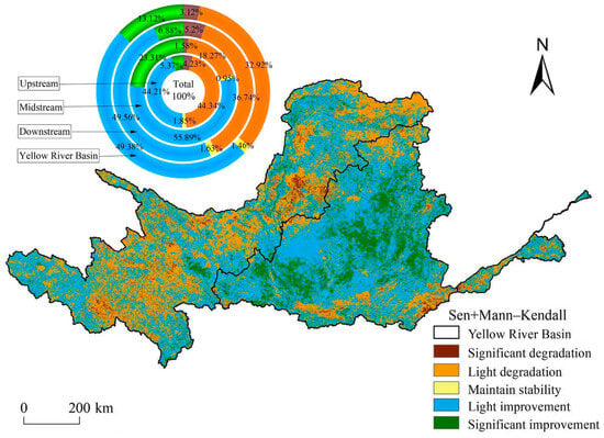 - Liu, C.; Zhang, X.; Wang, T.; Chen, G.; Zhu, K.; Wang, Q.; Wang, J. Detection of Vegetation Coverage Changes in the Yellow River Basin from 2003 to 2020. Ecol. Indic. 2022, 138, 108818. [Google Scholar] [CrossRef]