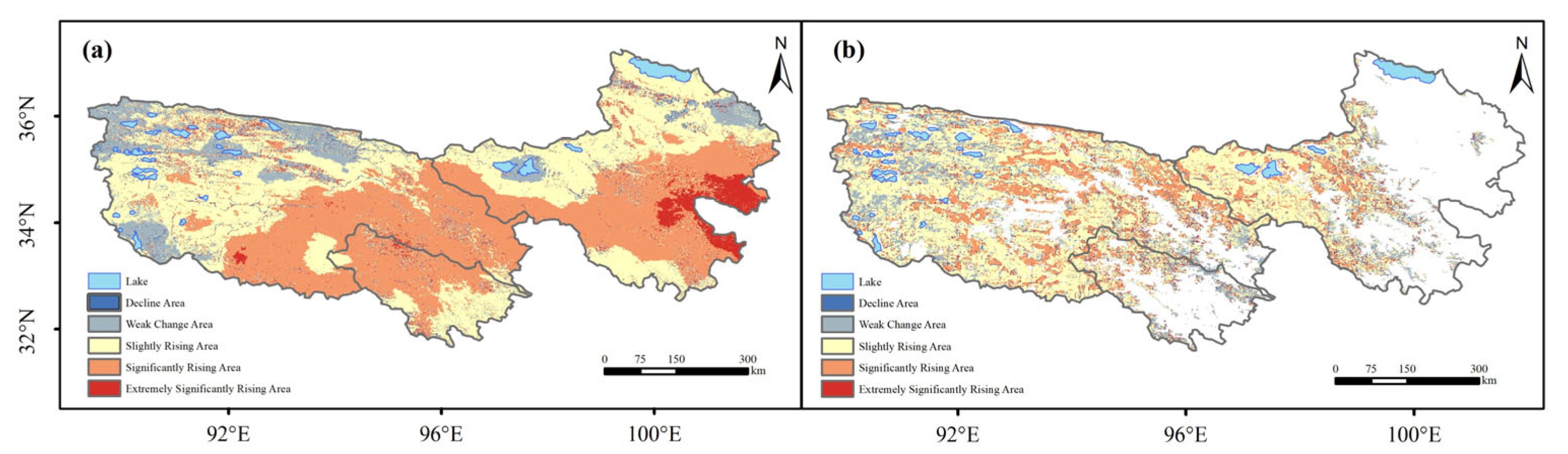 - Zhai, X.; Liang, X.; Yan, C.; Xing, X.; Jia, H.; Wei, X.; Feng, K. Vegetation dynamic changes and their response to ecological engineering in the Sanjiangyuan Region of China. Remote Sens. 2020, 12, 4035. [Google Scholar] [CrossRef]