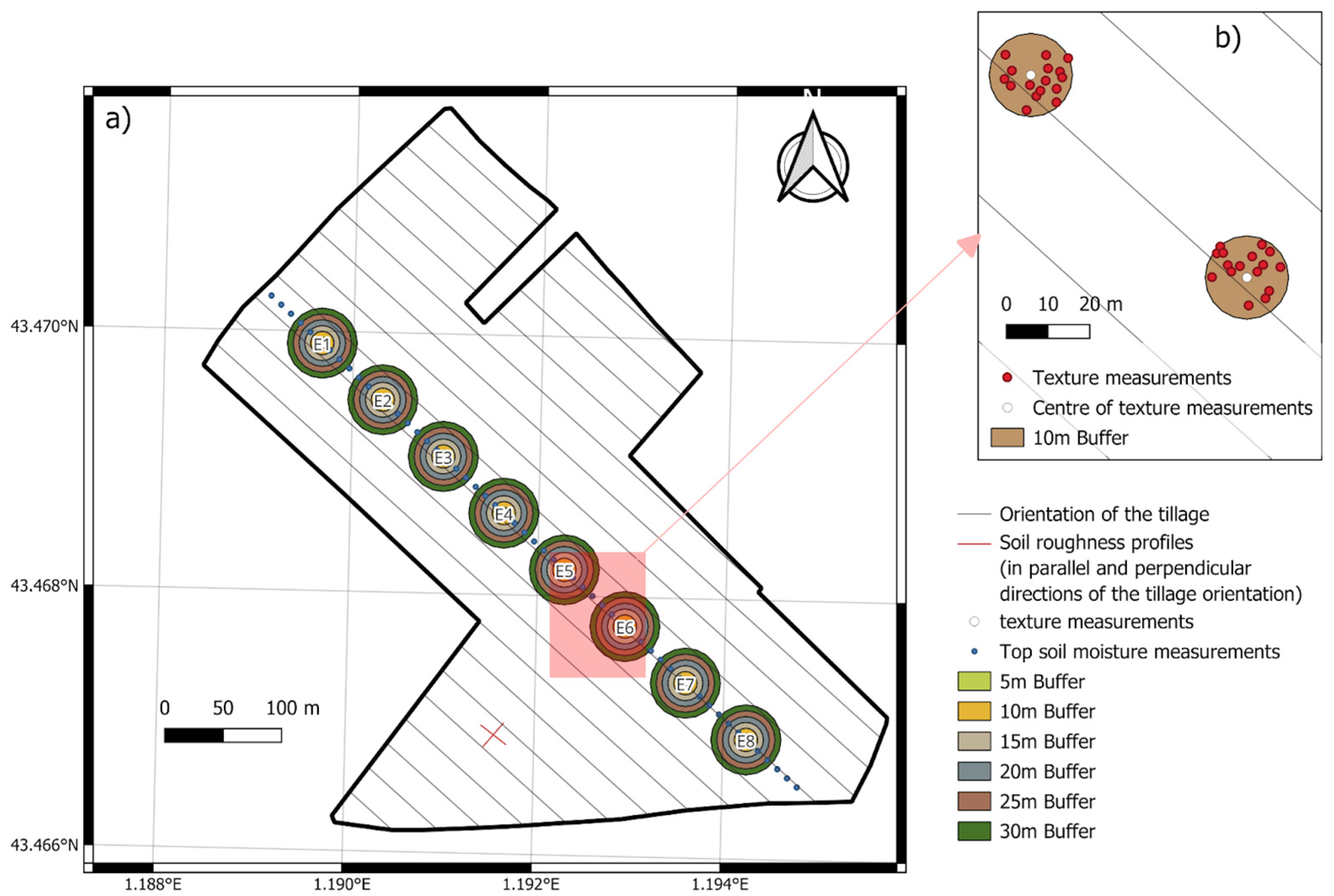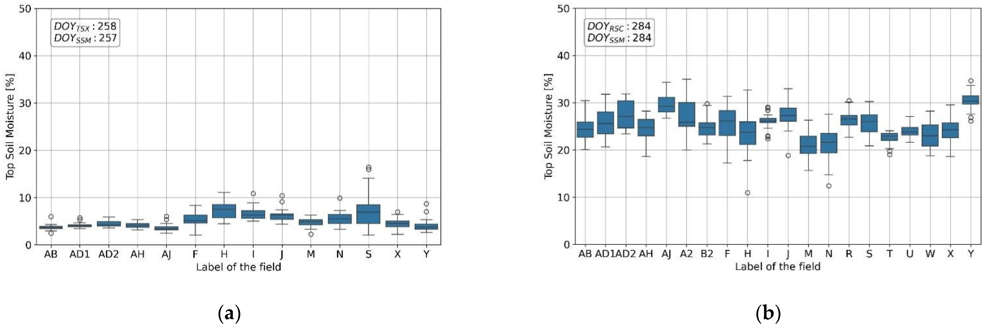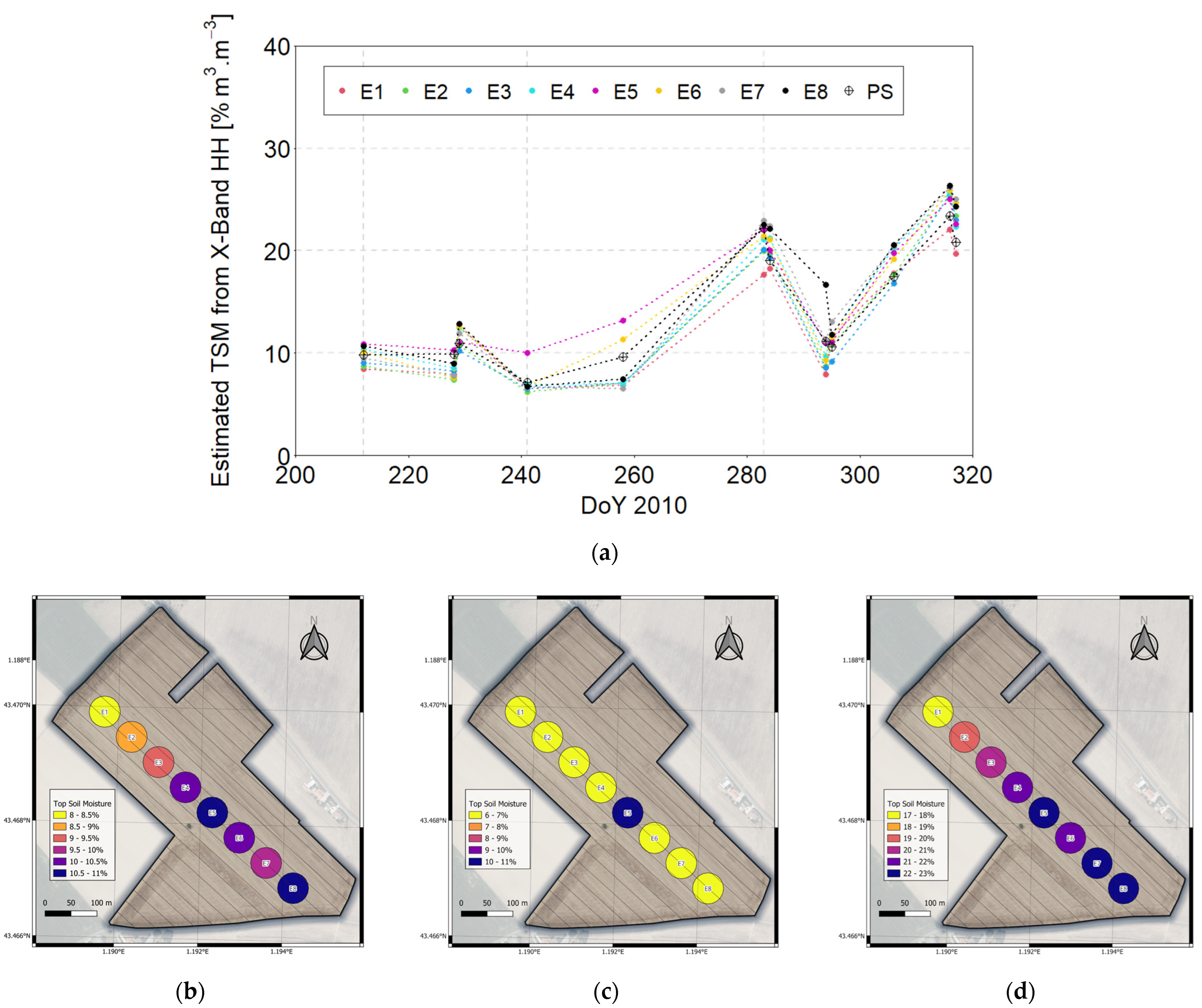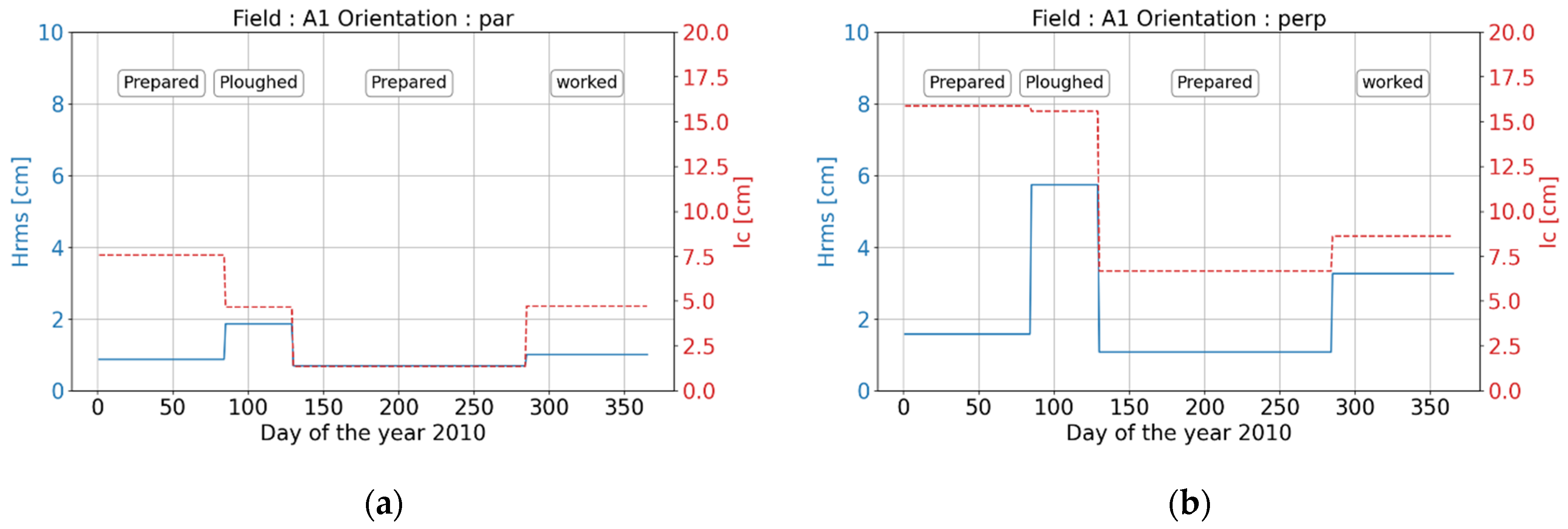- Fieuzal, R.; Baup, F. Evaluation of the Potential for Estimating Backscattering Coefficients over Bare Agricultural Soils at the Intra-Plot Scale. Appl. Sci. 2025, 15, 1827. [Google Scholar] [CrossRef]